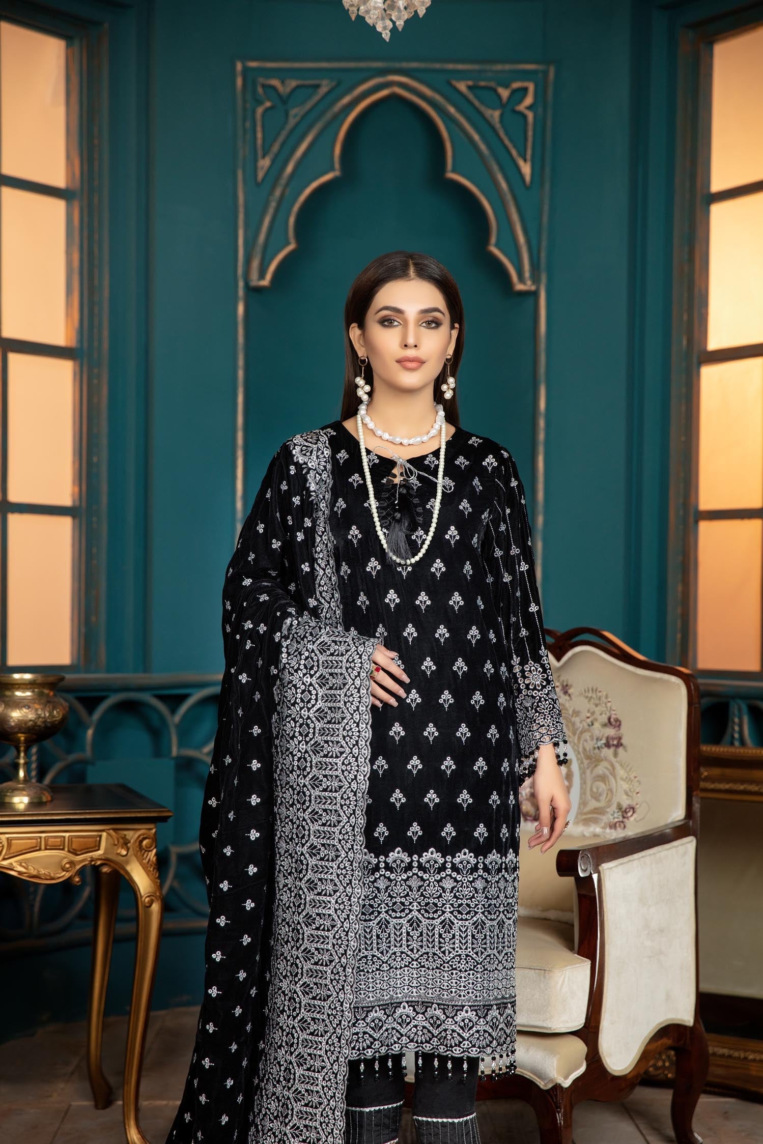 Black Rose - Embroidered Velvet 3 piece
