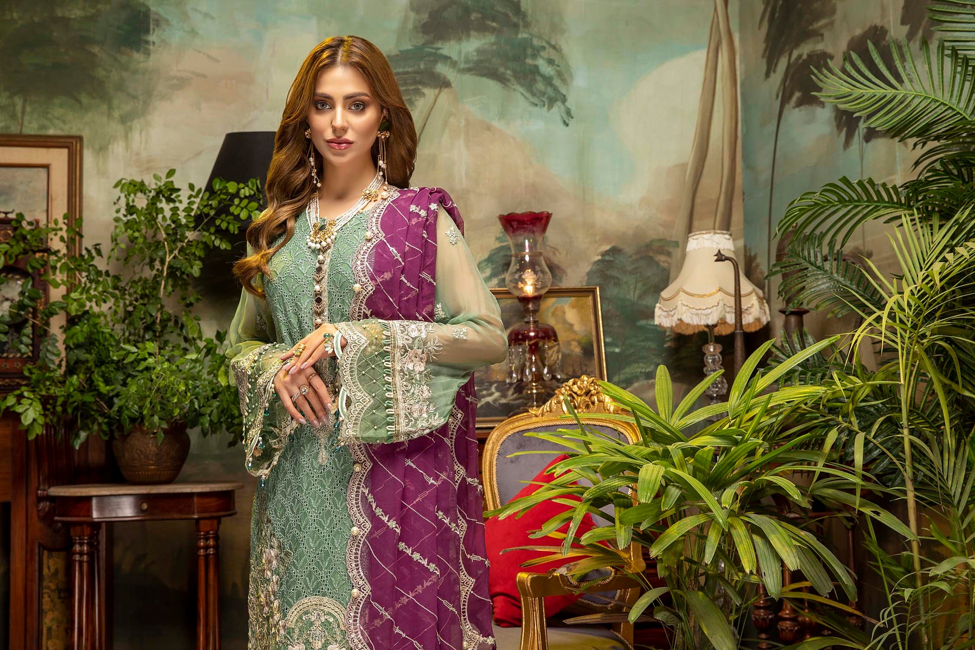 - Schiffli Embroidered Chiffon Front 0.8 MTR