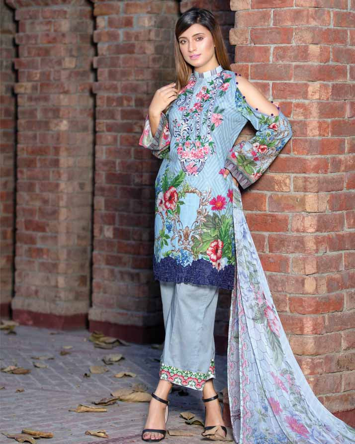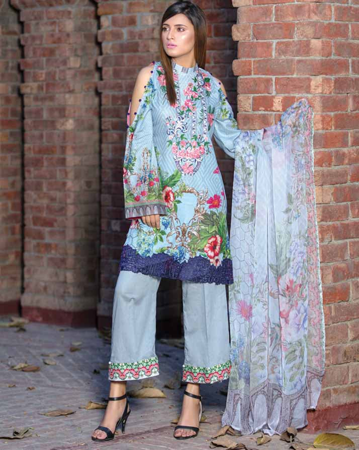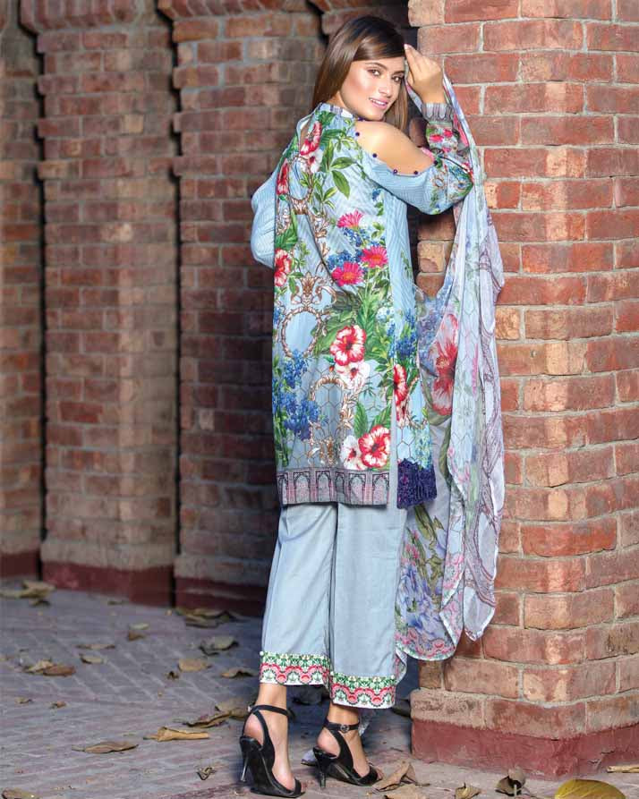 Unstitched – Three Piece, Shirt Fabric: Digital Printed & Embroidered Lawn