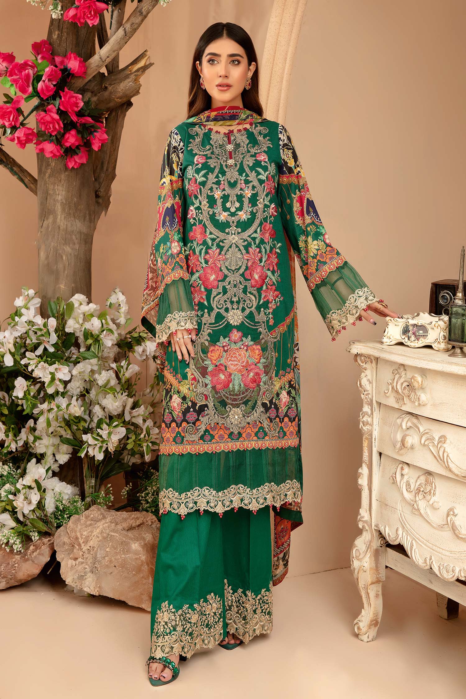 Blooming Floral - Digital Printed & Embroidered 3PC