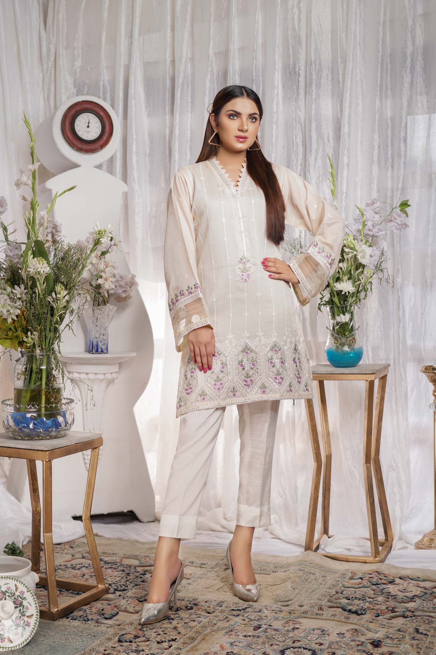 Embroidered Paper Silk Stitch Kurti 1PC