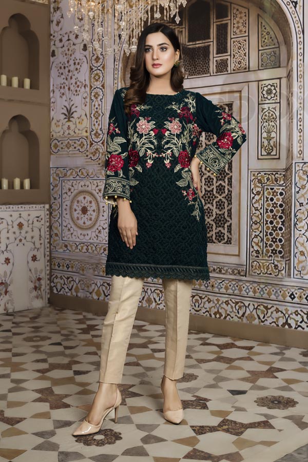 Bottle Green 01 - Embroidered Velvet Un Stitched (2 Piece)