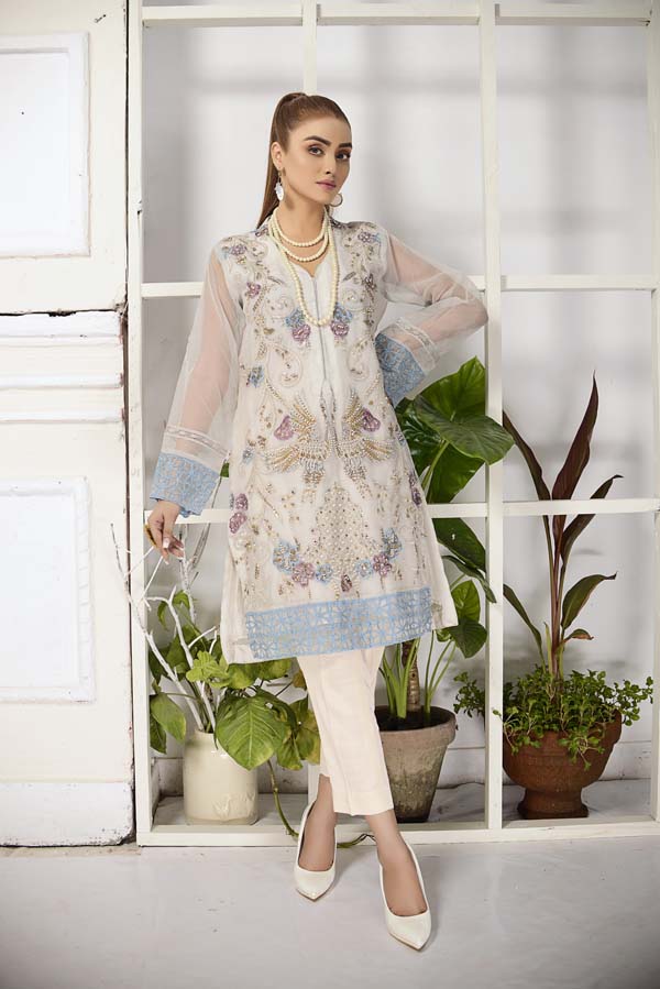 Unstitched Embroidered & Hand Embellished Organza Shirt