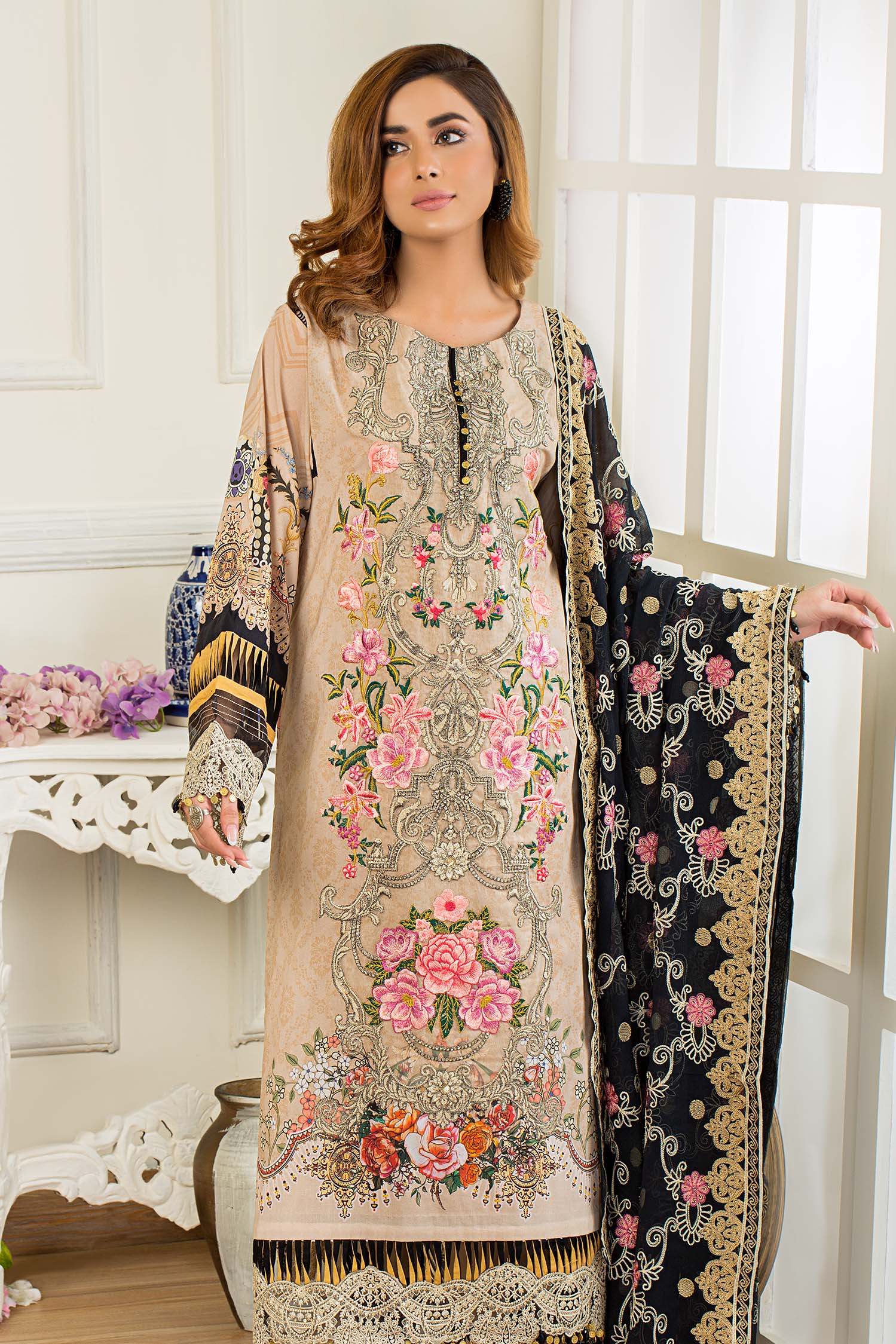 Burly Wood - Digital Printed & Embroidered Swiss Lawn