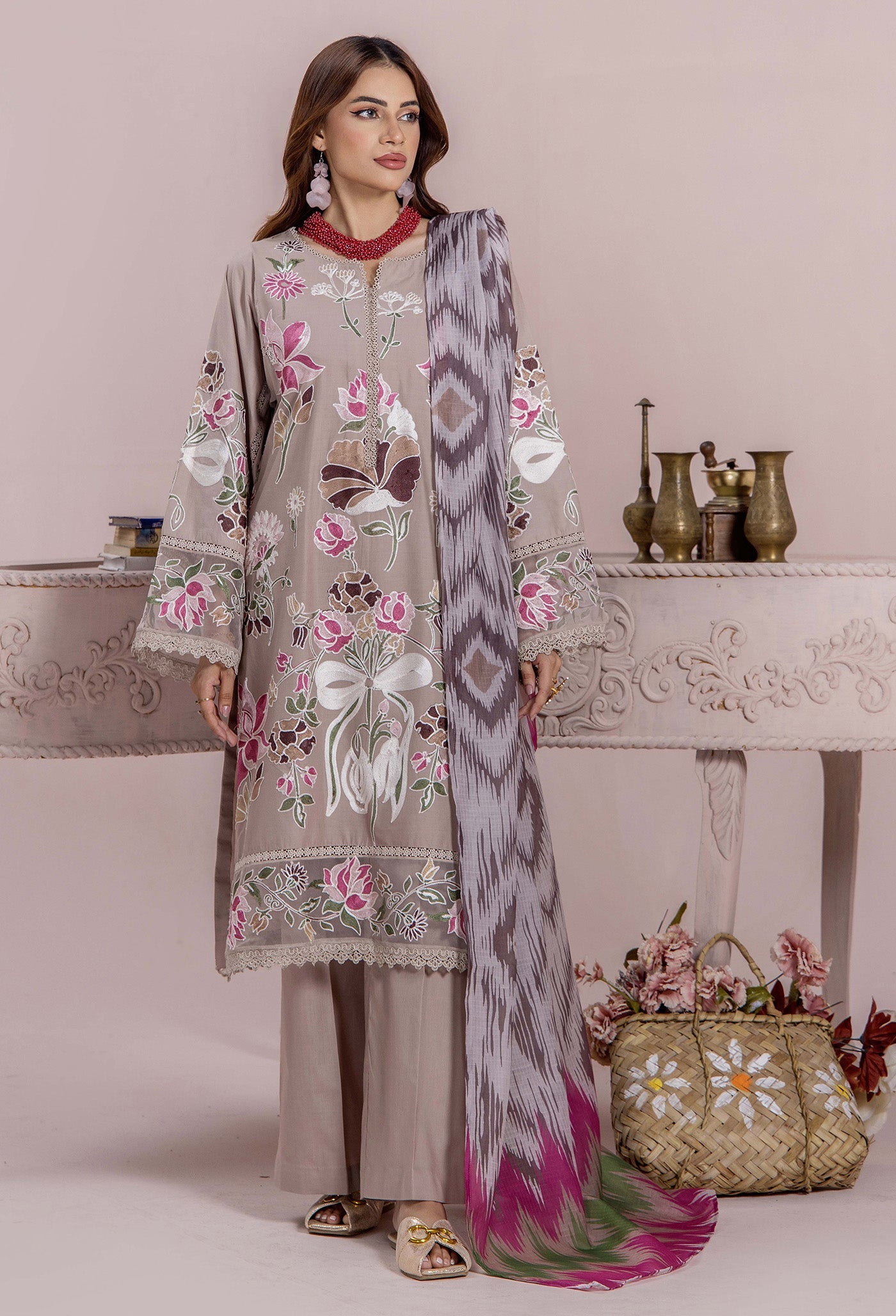 - Ready To Wear Embroidered Cambric Shirt 1-PC