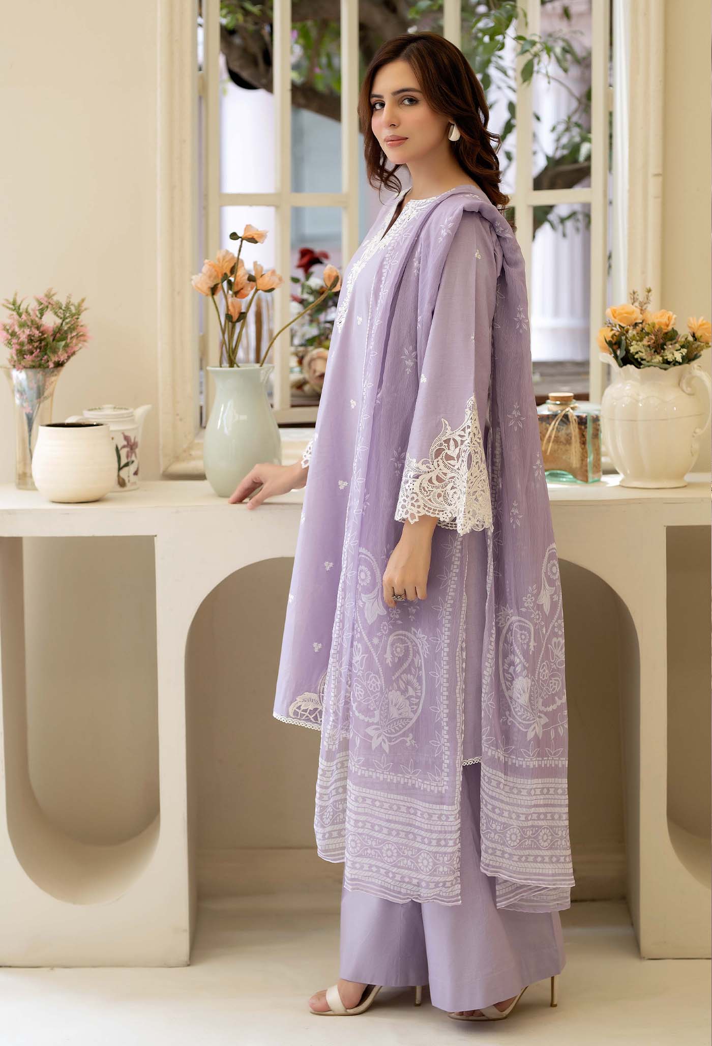 - Unstitched Embroidered Cotton Trouser 1-PC