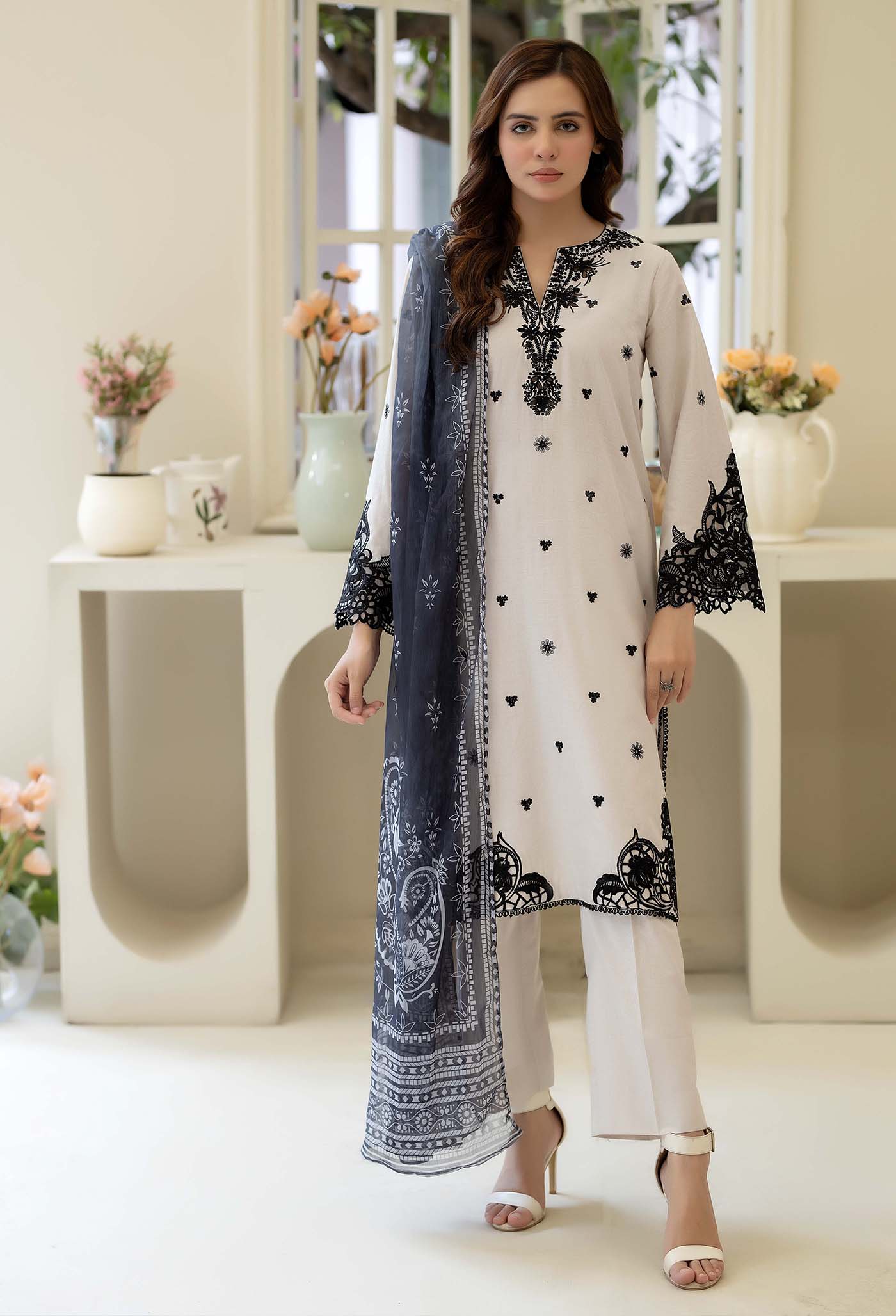 - Unstitched Embroidered Cotton Trouser 1-PC