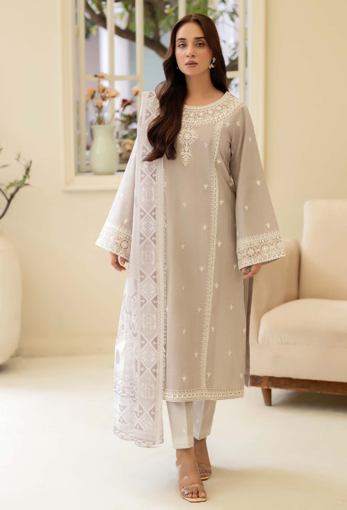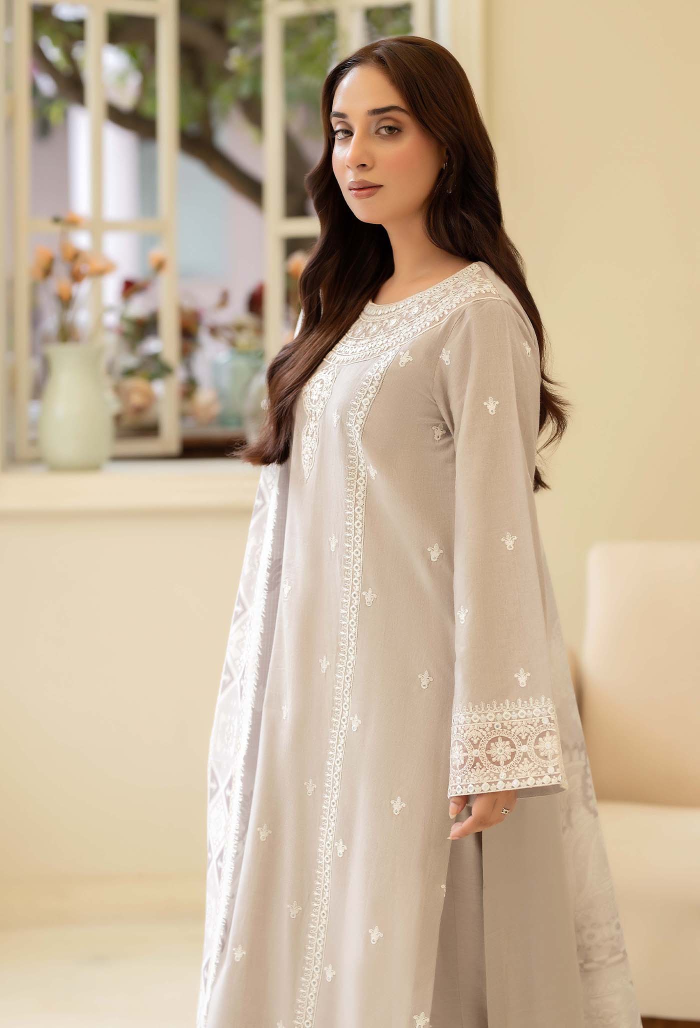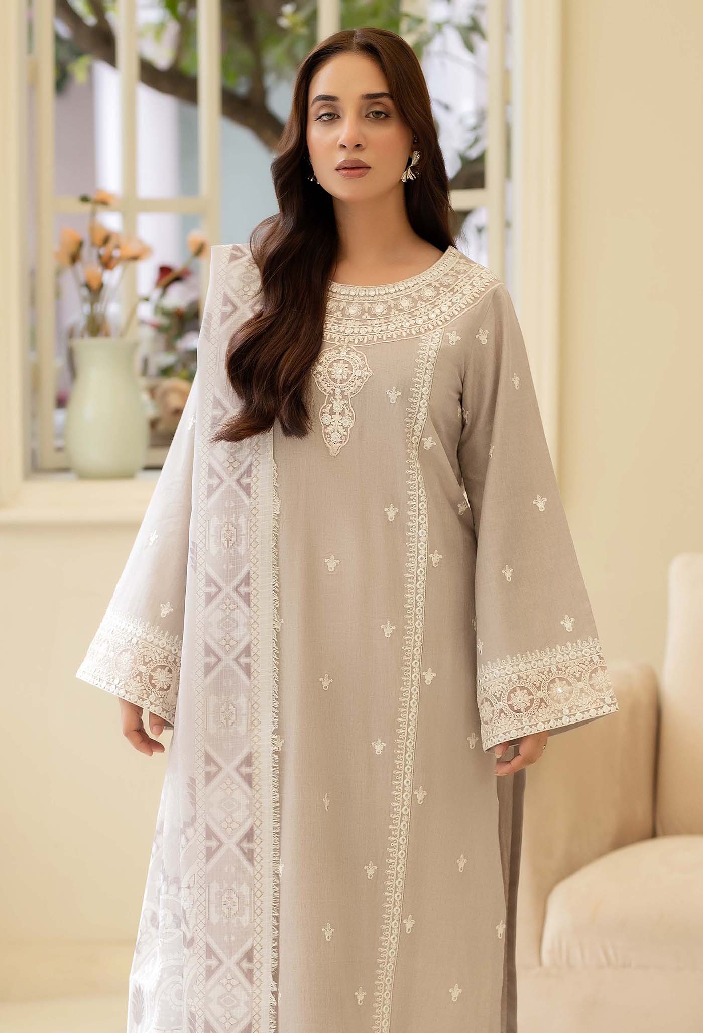 - Unstitched Embroidered Cambric Shirt 1-PC