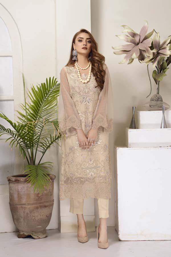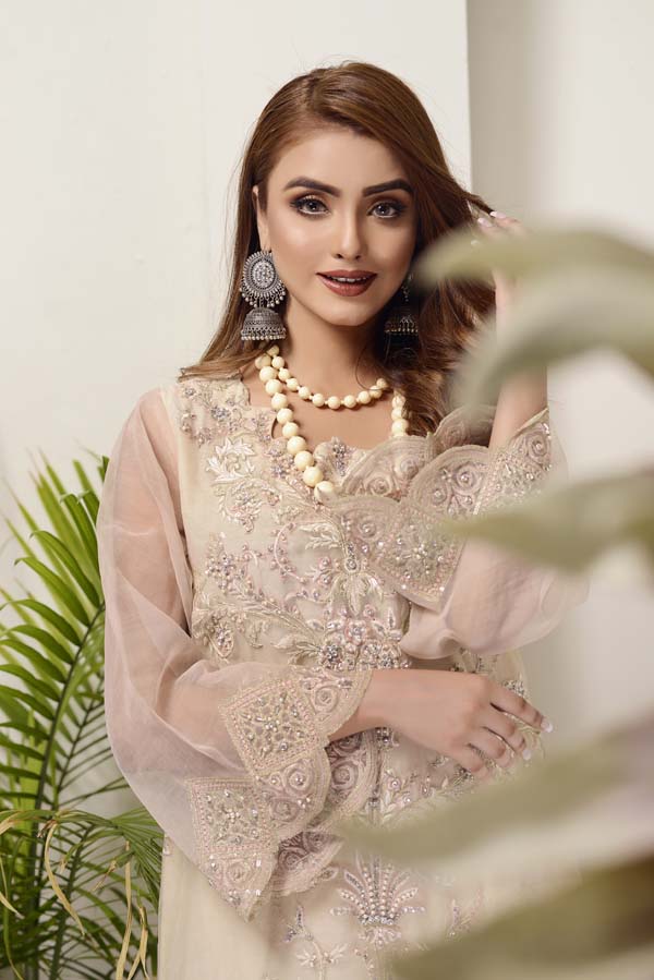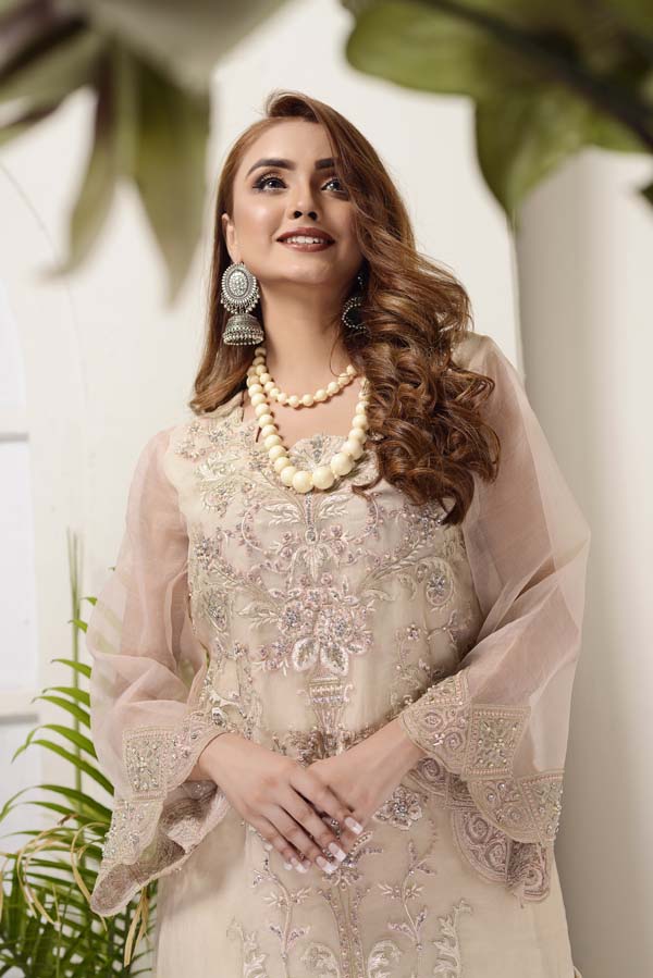 Unstitched Embroidered & Hand Embellished Organza Shirt