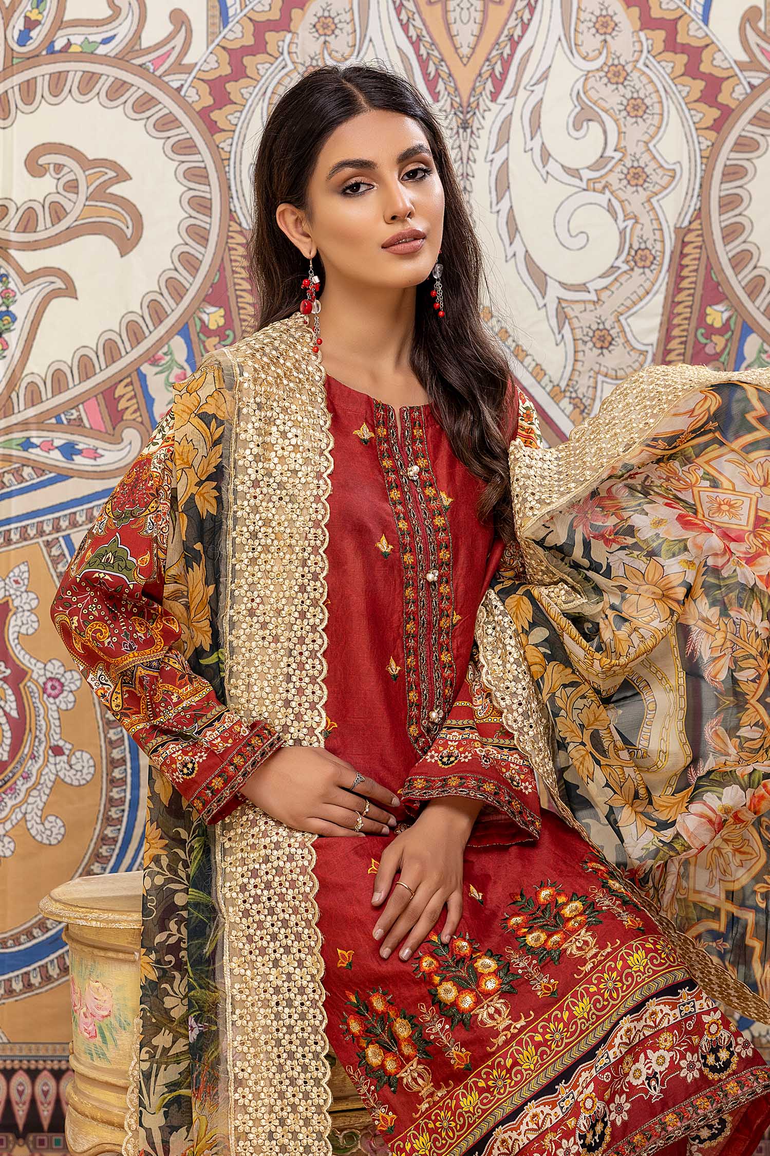 Cherry Red - Printed & Embroidered Lawn Pret 3PC