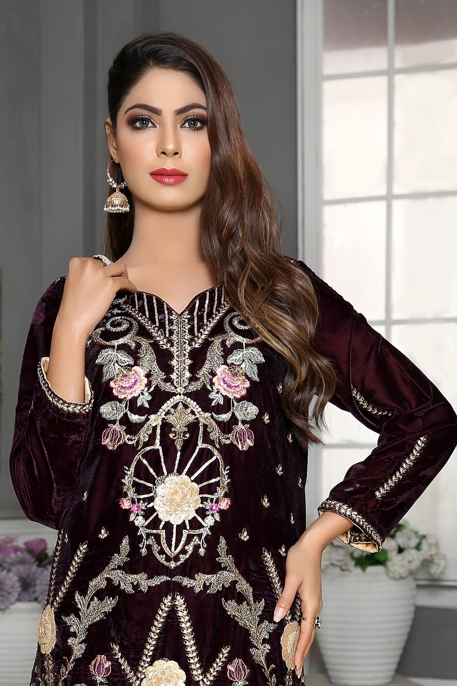 Chrysan - Embroidered Velvet Unstitch Kurti