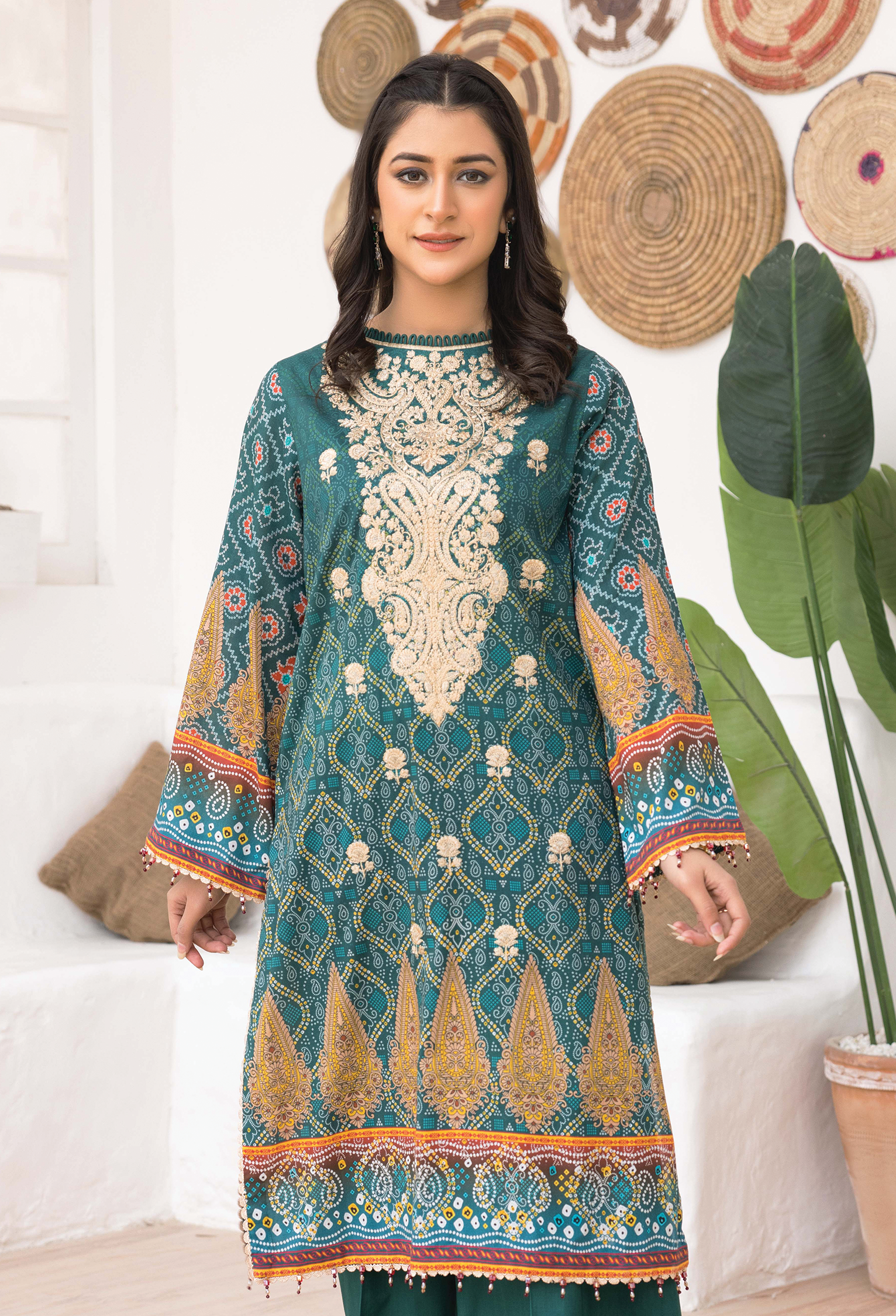 DIGITAL PRINTED AND EMBROIDERED LAWN SHIRT       1 PC