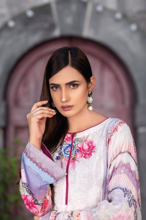 Cloud White - Digital Sequin Chickenkari Viscose