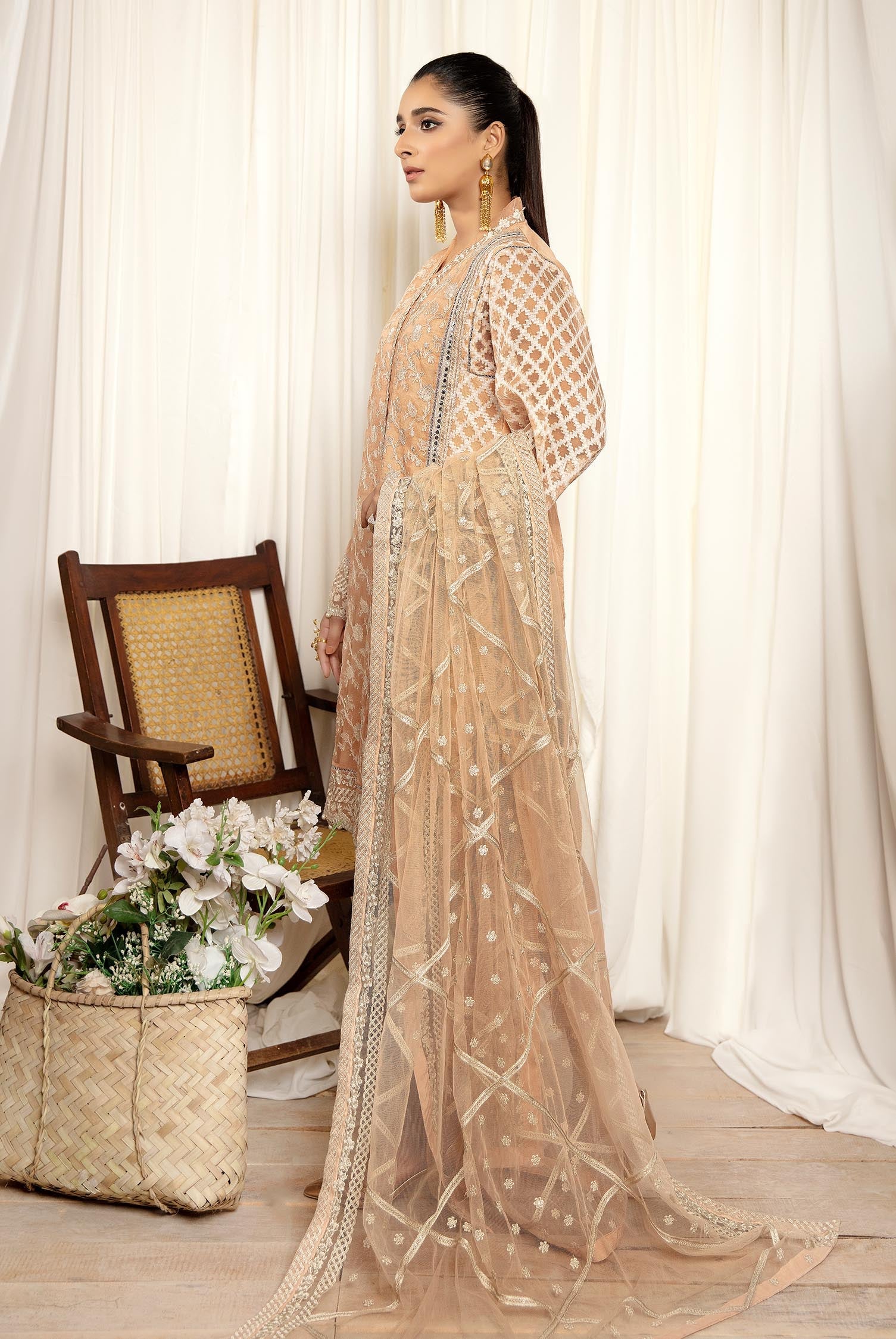 Stitched Embroidered Net Dupatta