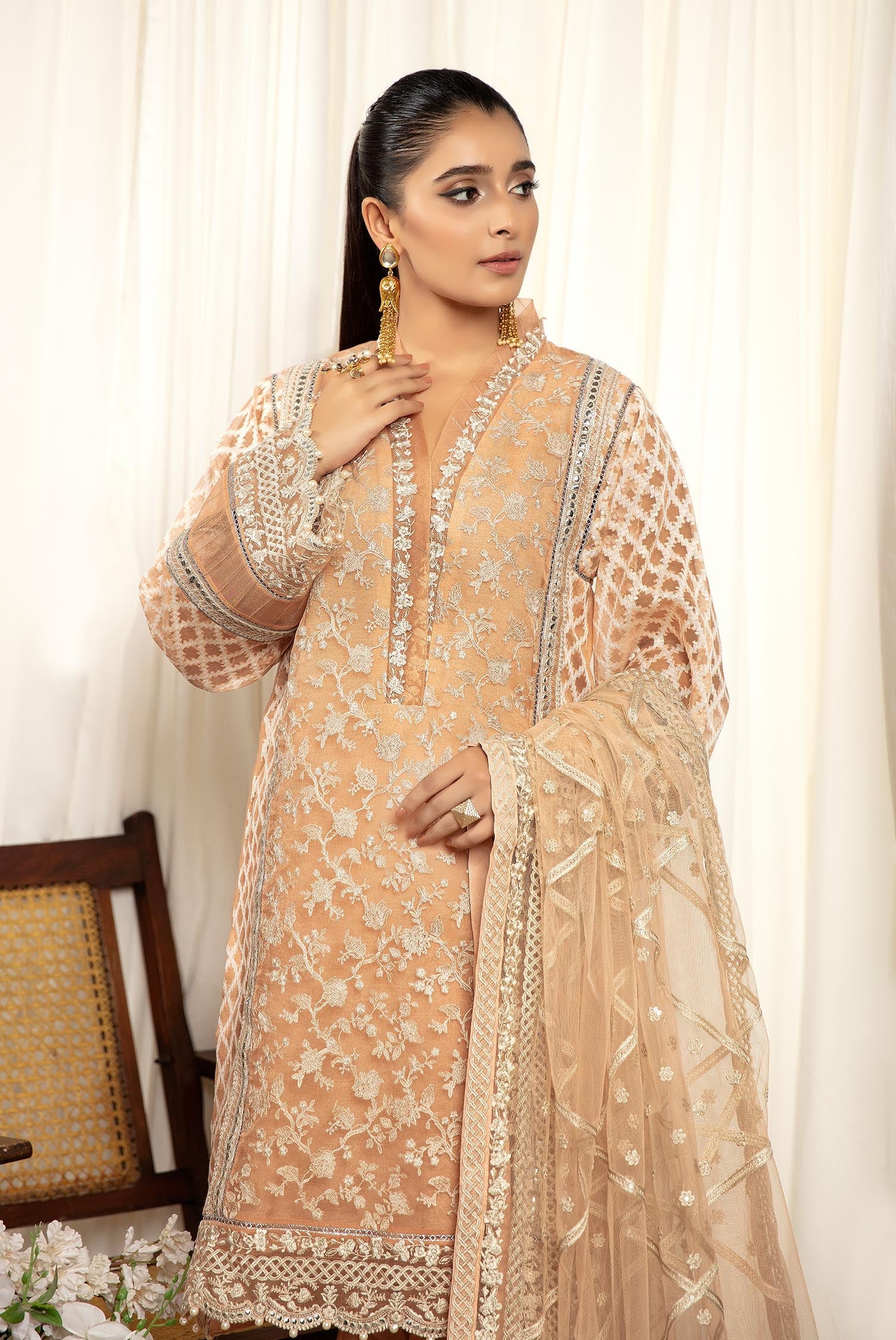 Stitched Embroidered Organza Shirt