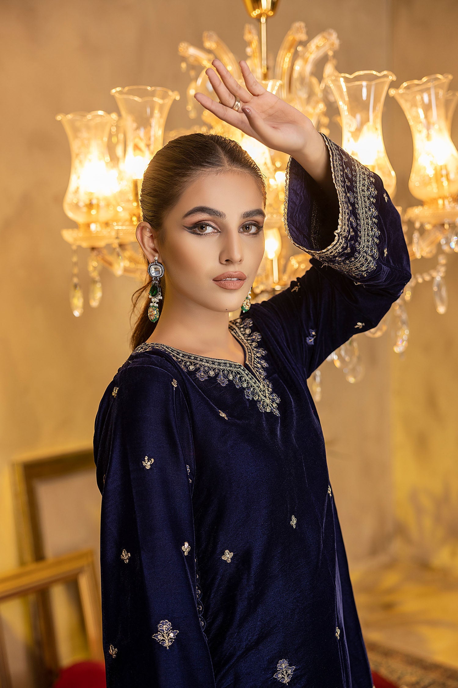 Dark Eve - Embroidered Velvet Stitched 2PC