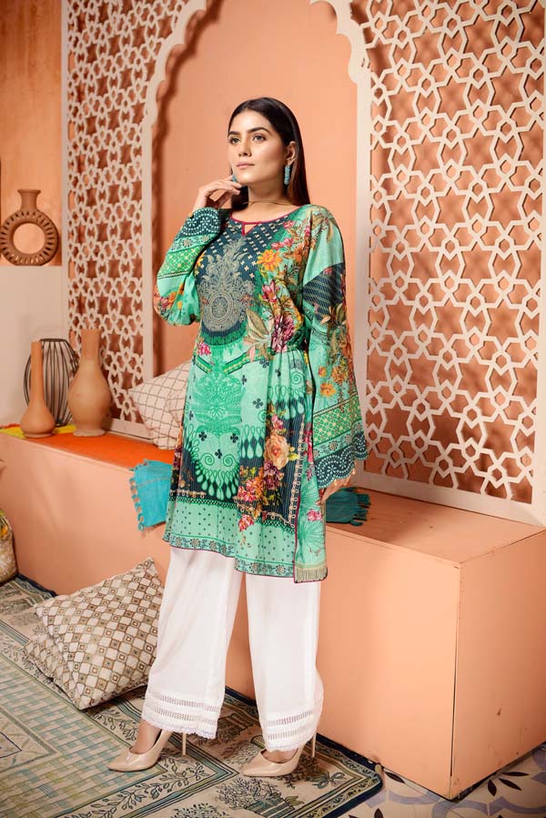 Dark Turquoise - Digital Mesuri Lawn Unstitch Shirt