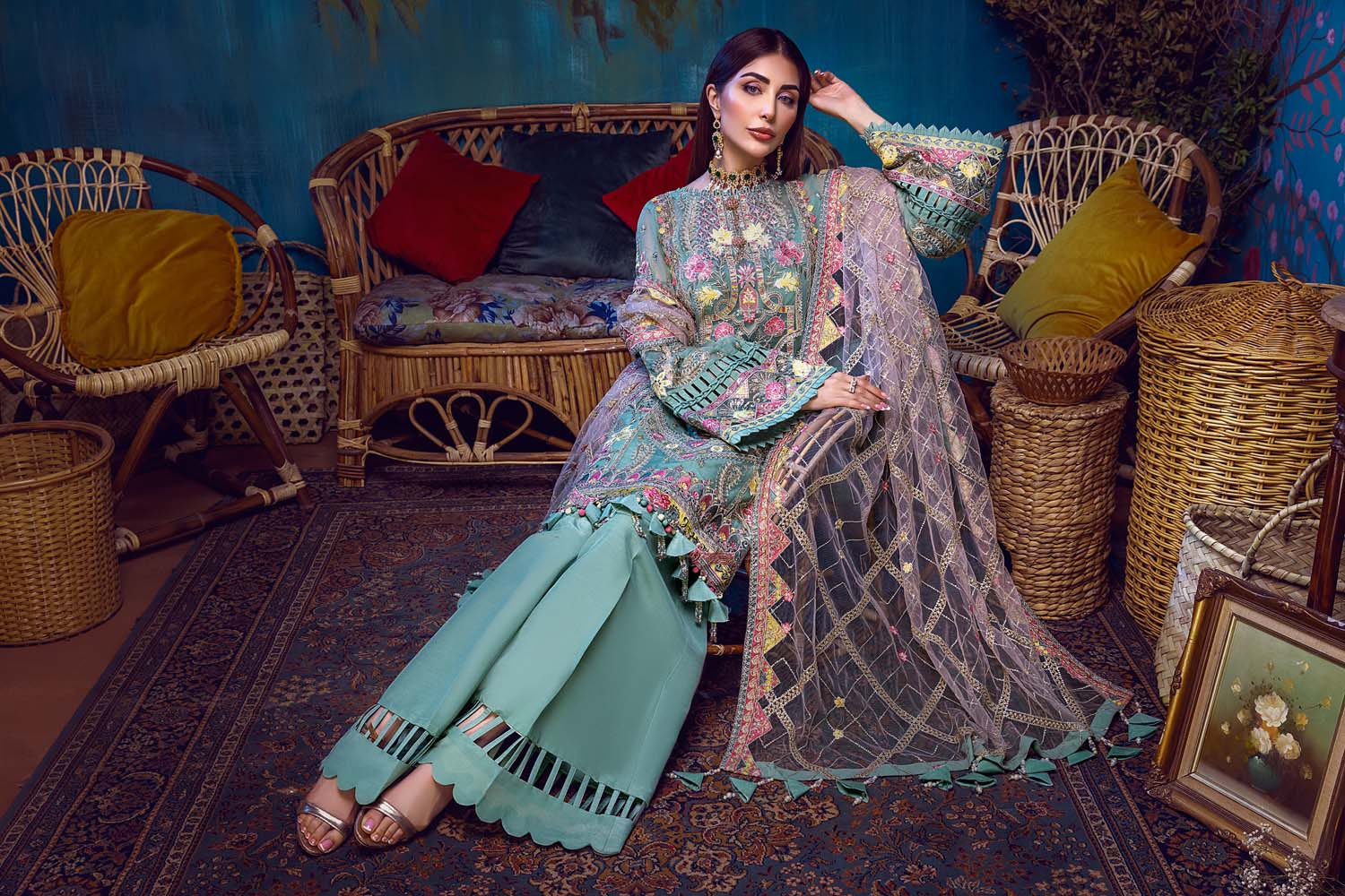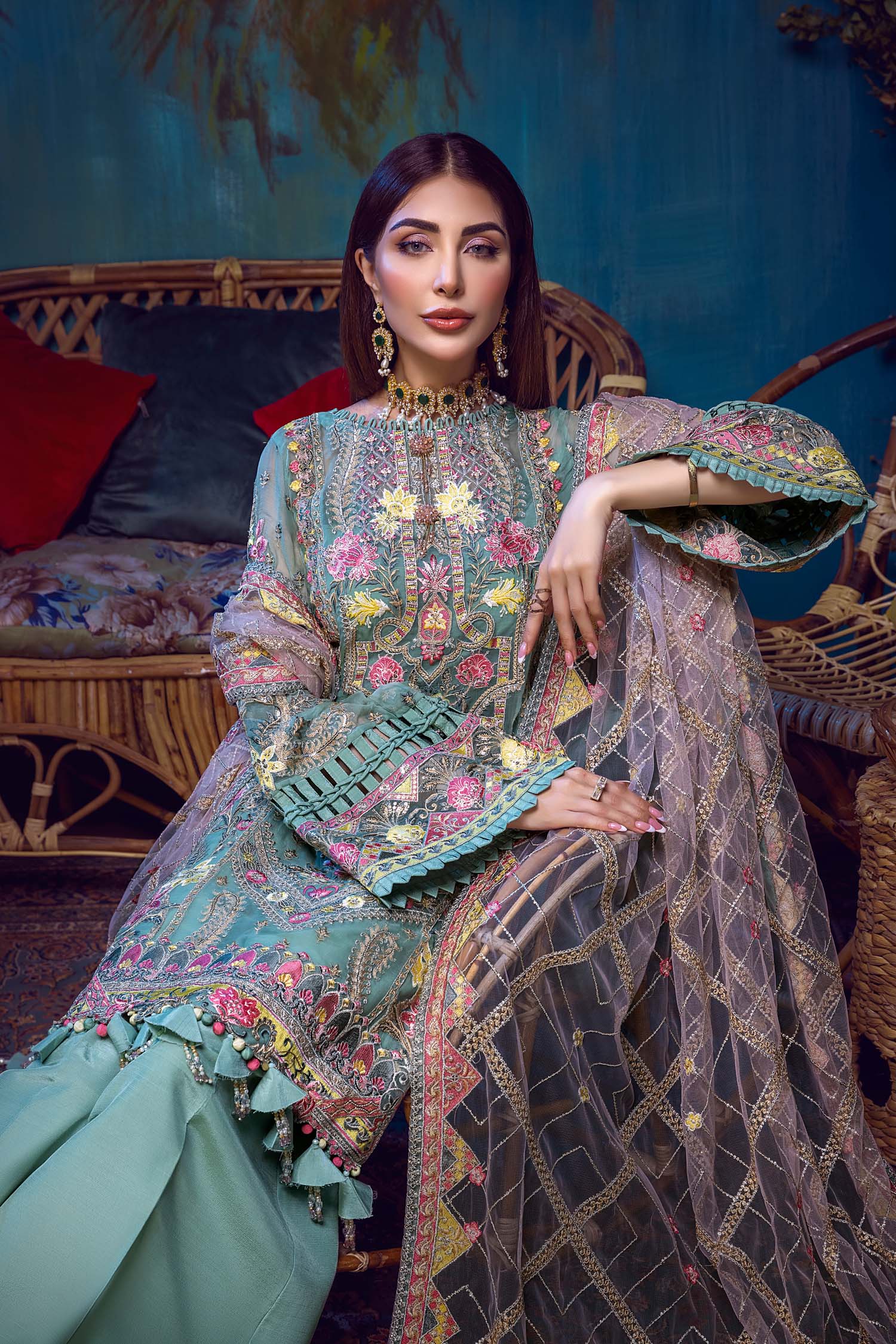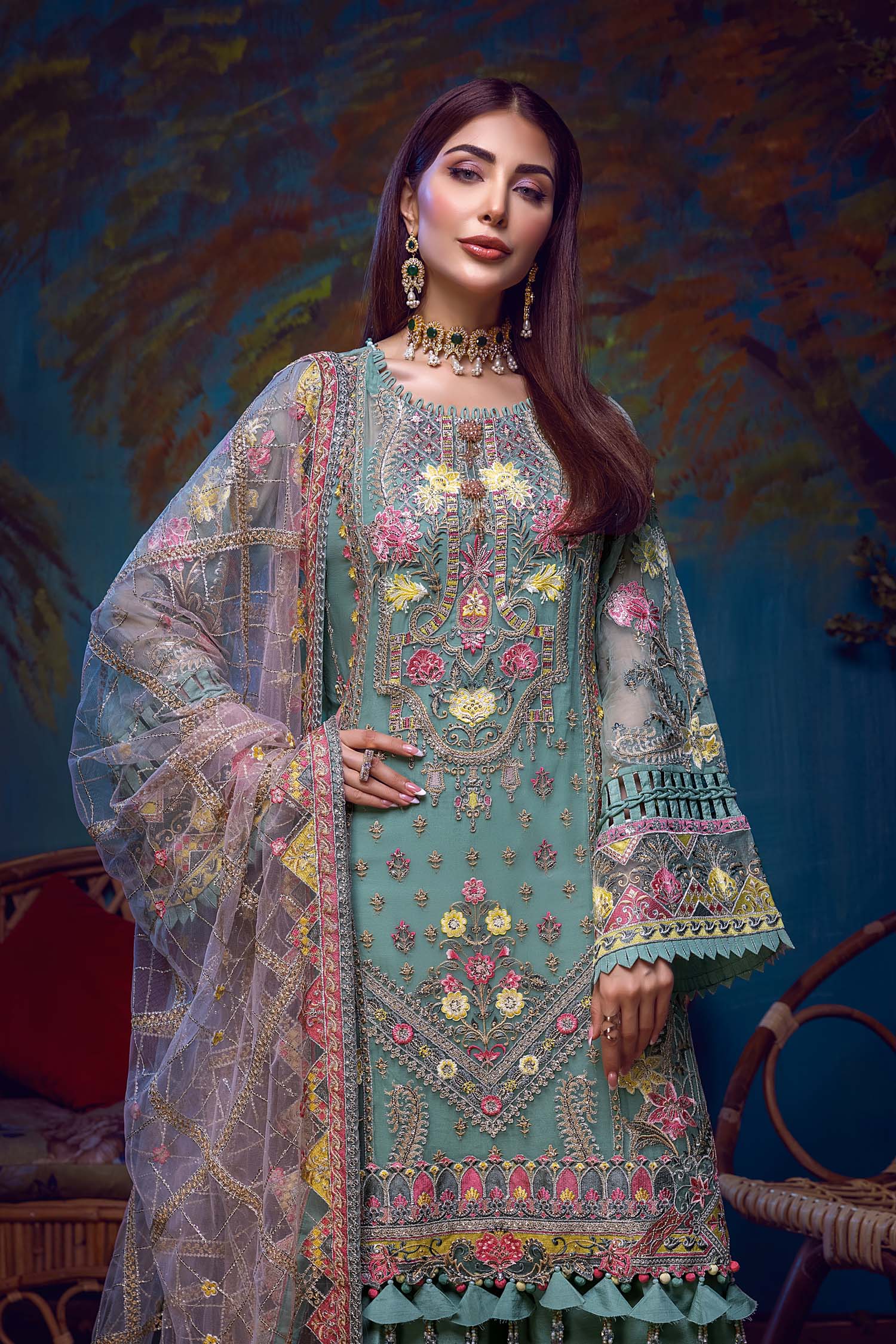- Embroidered Net Dupatta 2.5 Yard