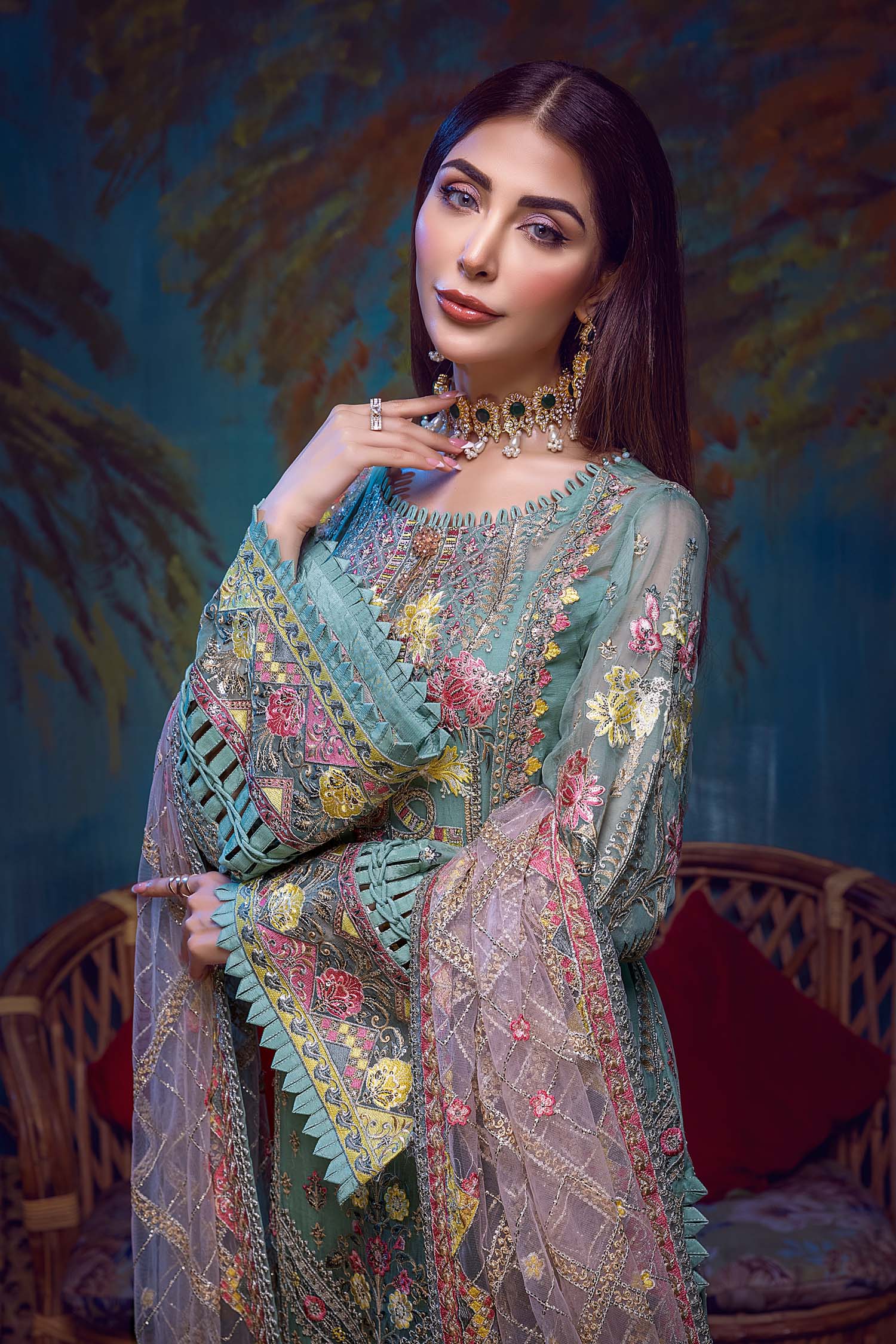 - Embroidered Chiffon Front 0.8 MTR