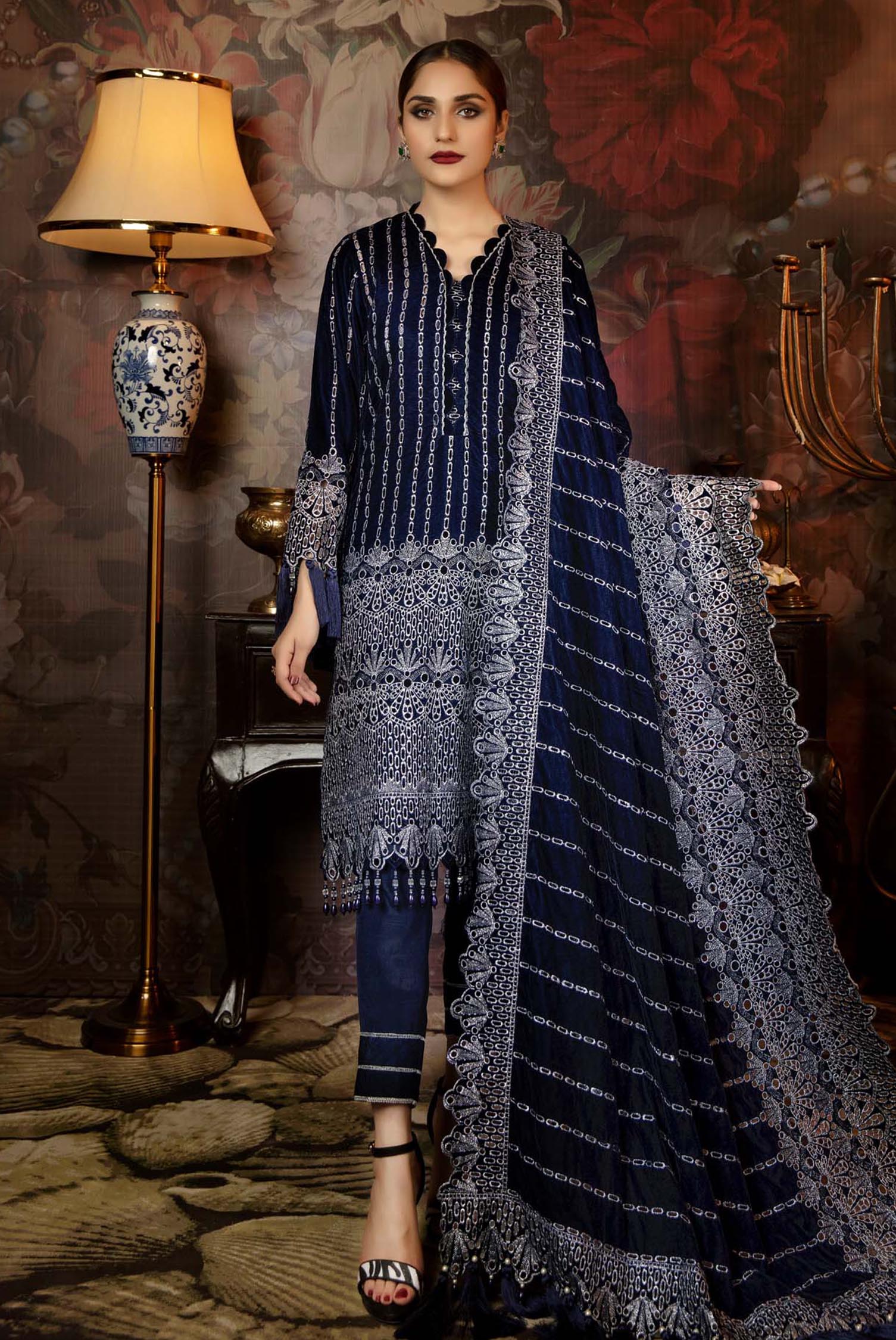 Dwarf Iris - Embroidered Velvet 3PC Stitched