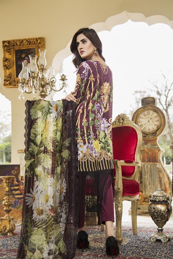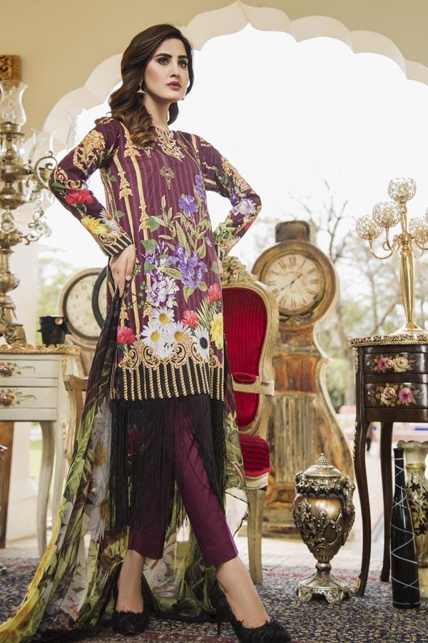 Digital Printed Crinkle Dupatta with side Scalloped Embroidery