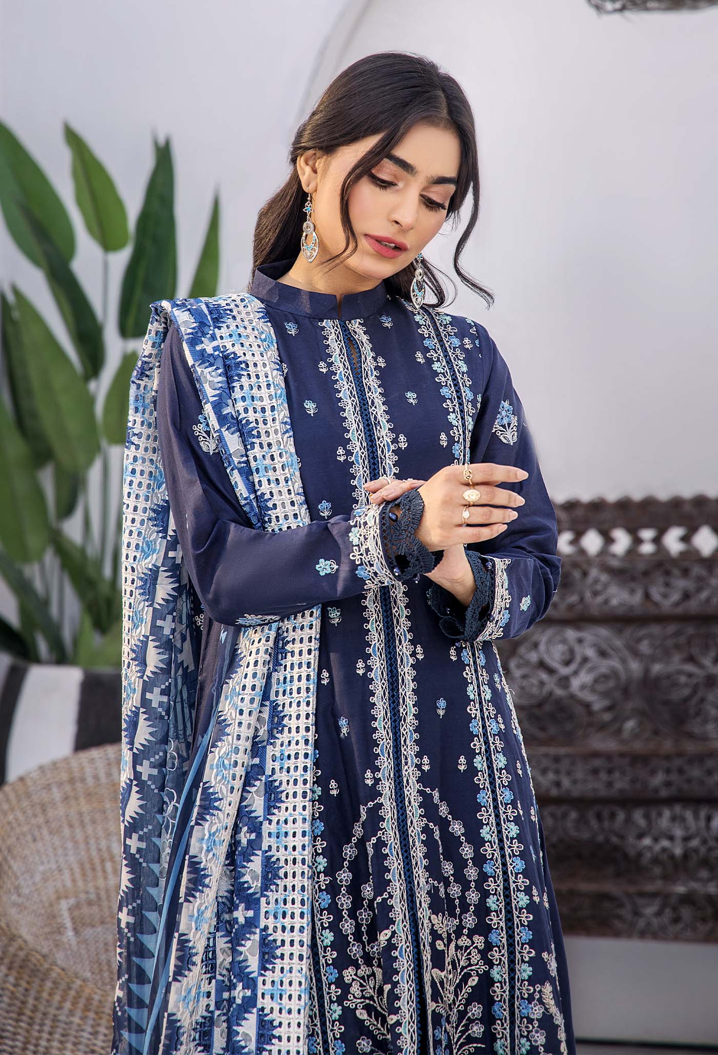 - Ready to wear Cotton Net Embroidered Dupatta