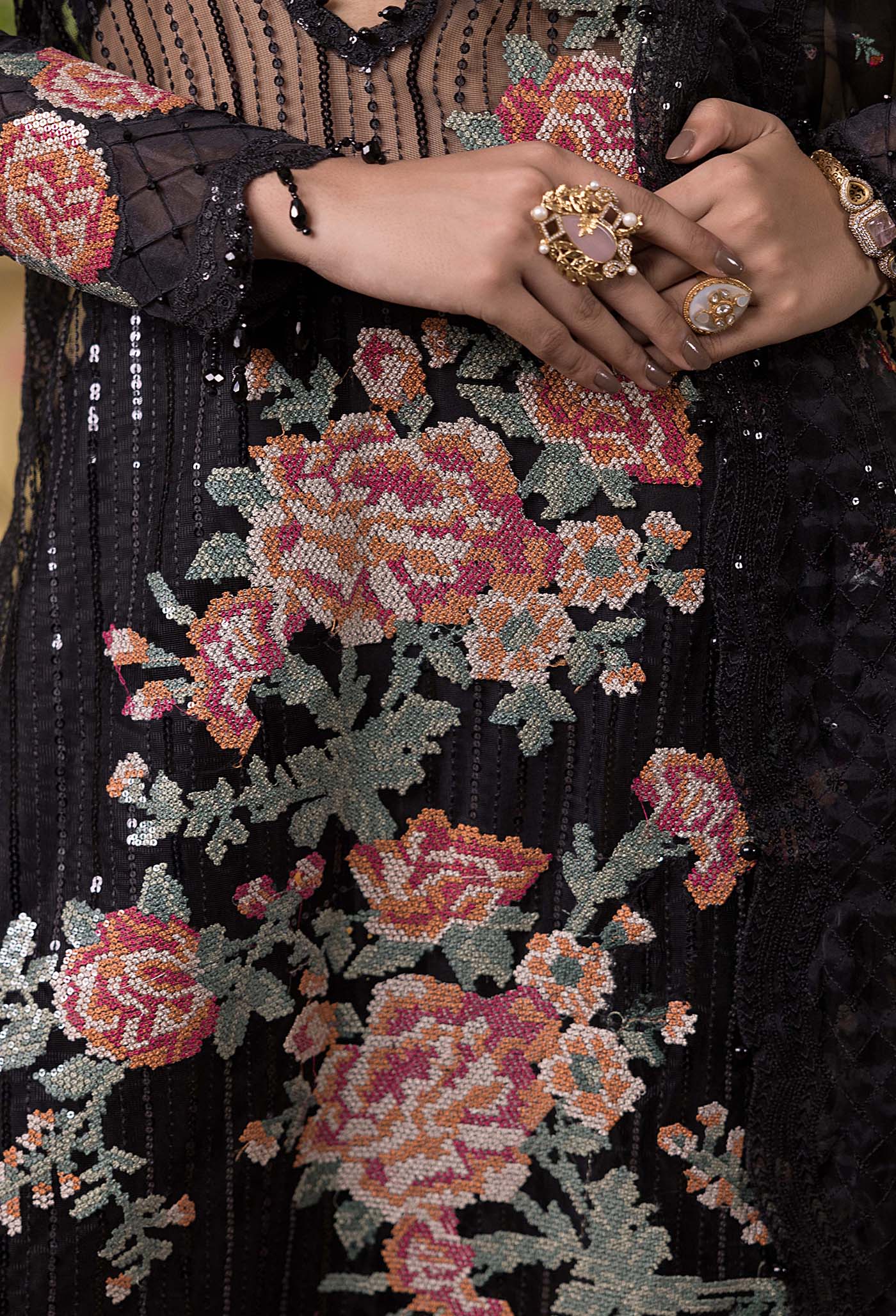 - Twins Sequence & Hand Embellished Embroidered Net Front 1-PC