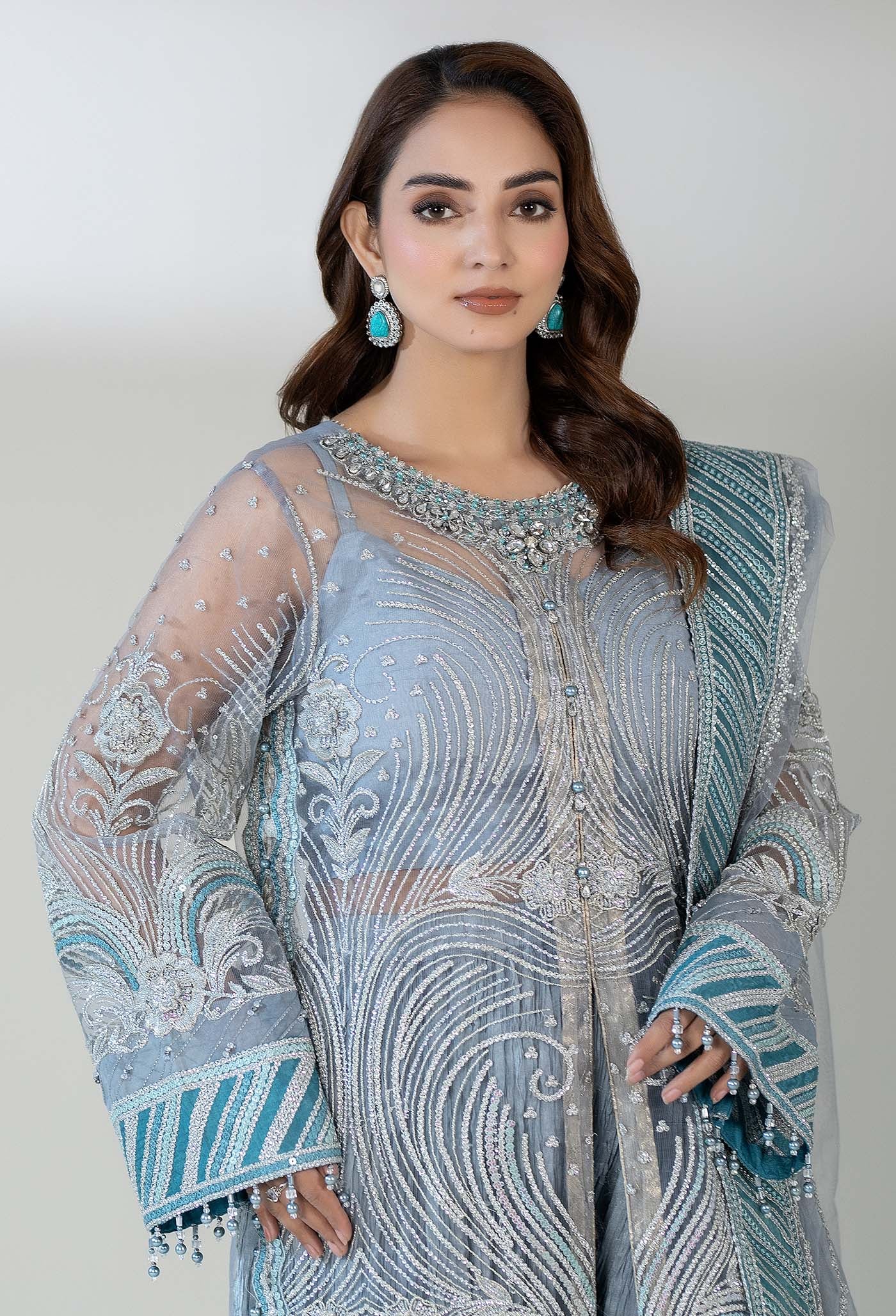 - Twins Sequence & Hand Embellished Embroidered Net Front 1-PC
