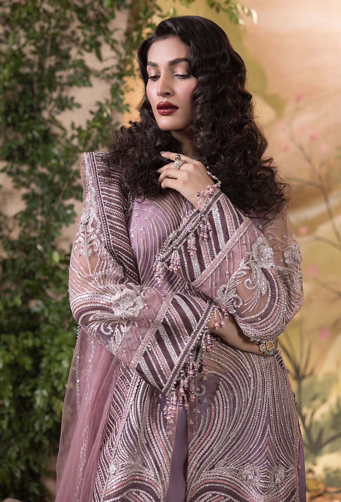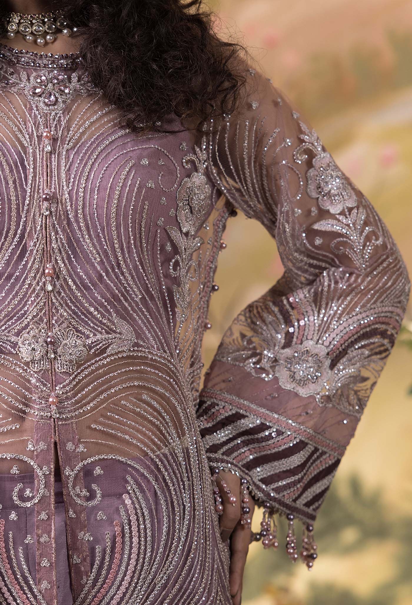 - Twins Sequence & Hand Embellished Embroidered Net Sleeves 1-PC