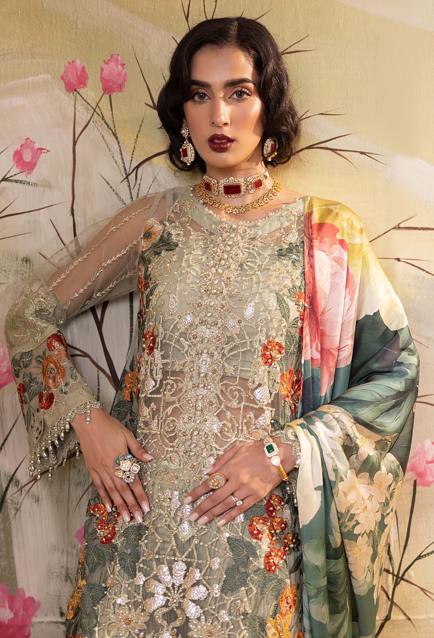 - Hand Embellished & Embroidered Net Front 1-PC