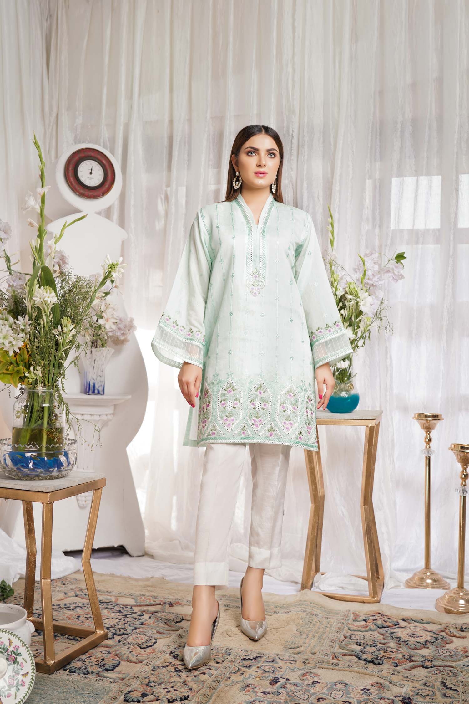 Embroidered Paper Silk Stitch Kurti 1PC