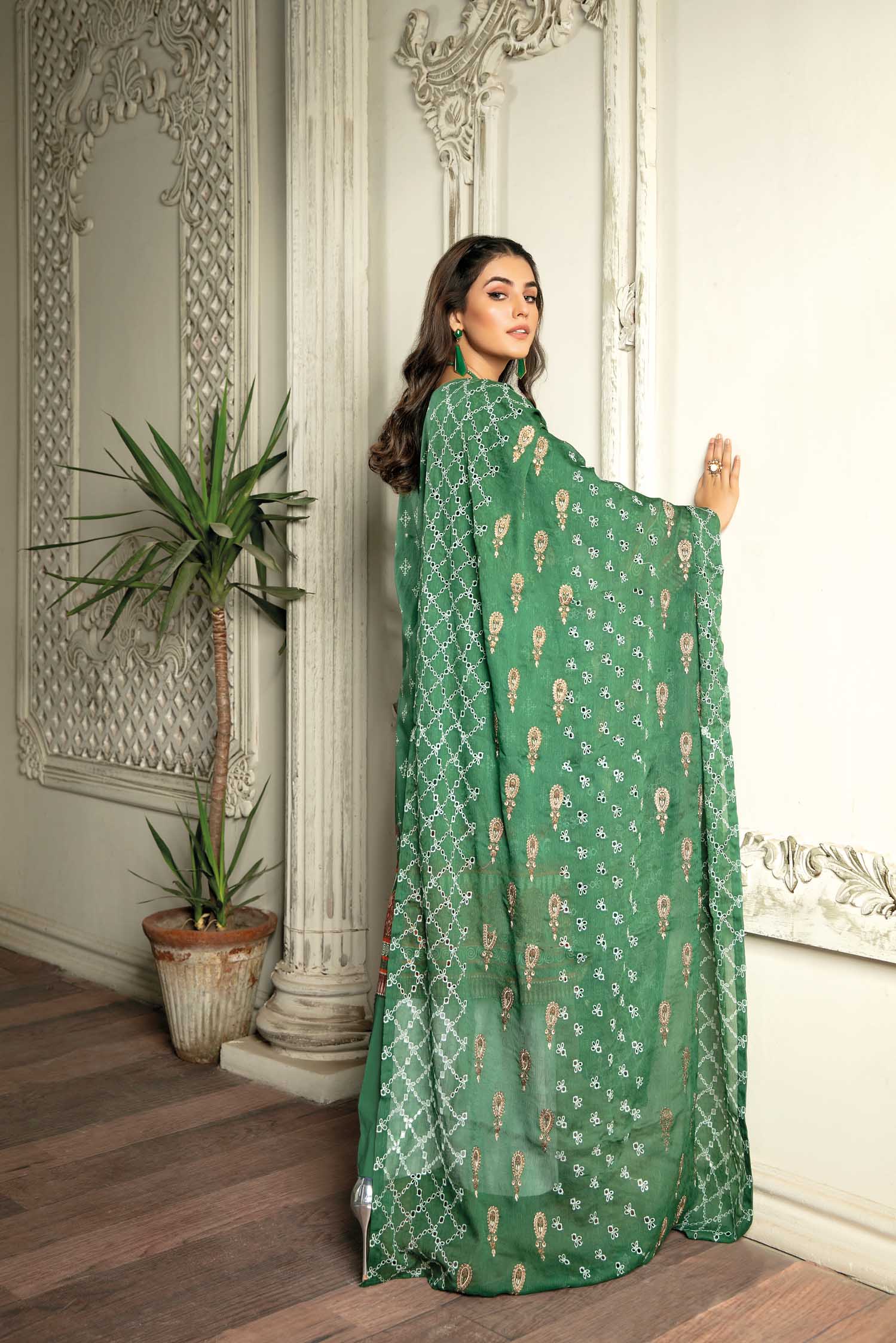 - Schiffli Embroidered Chiffon Dupatta