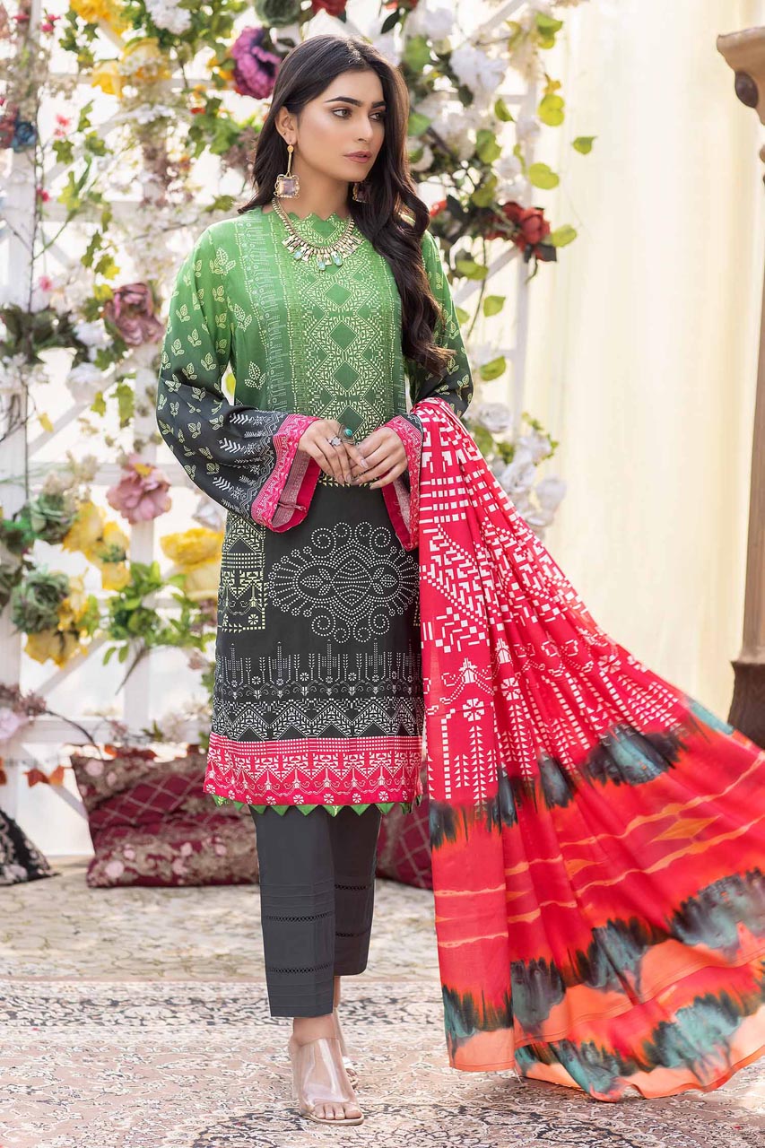 Hazel Green - Stitched Digital Printed Linen 3PC