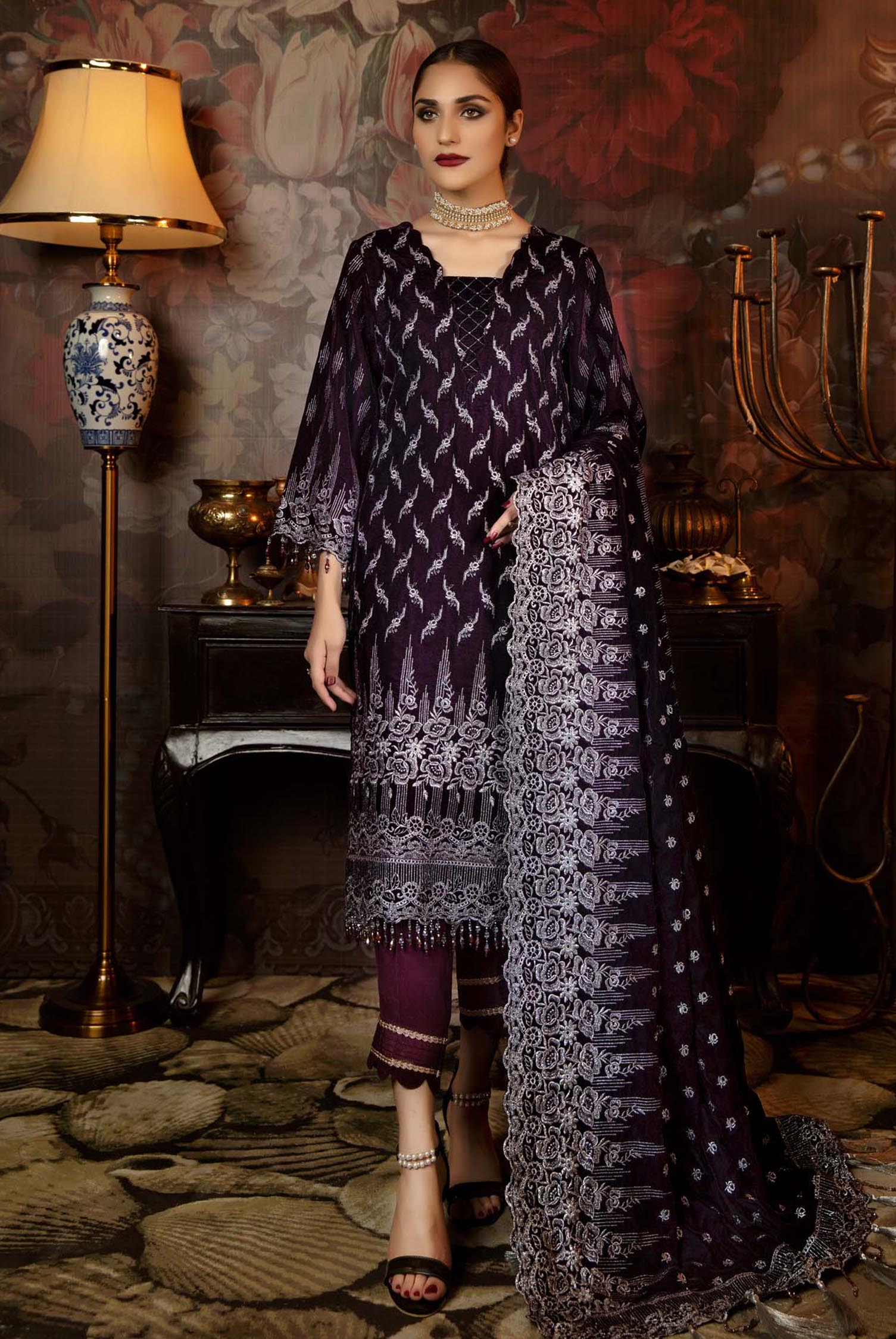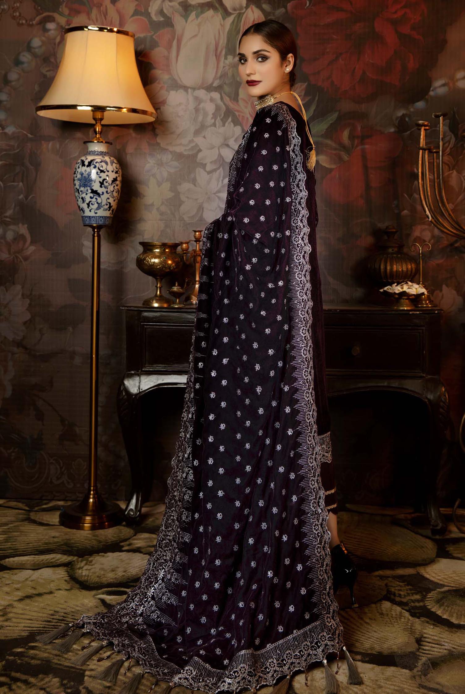 Hazel Rich - Embroidered Velvet 3PC Stitched