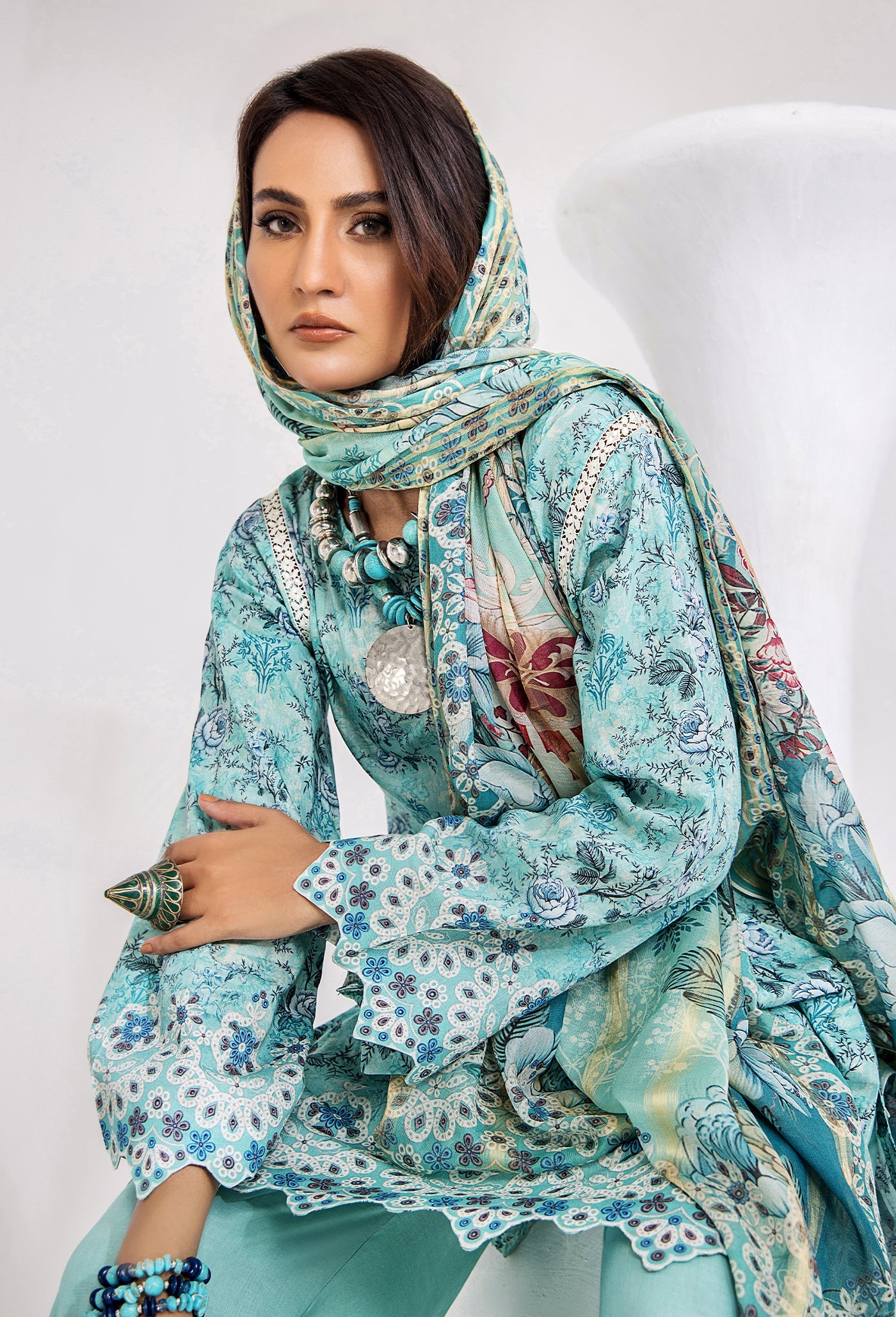 - Digital Printed Jacquard Lawn Dupatta 2.5 Yard