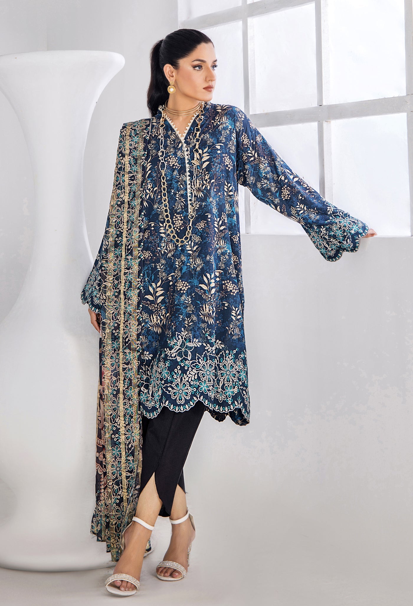 - Digital Printed Jacquard Lawn Dupatta 2.5 Yard