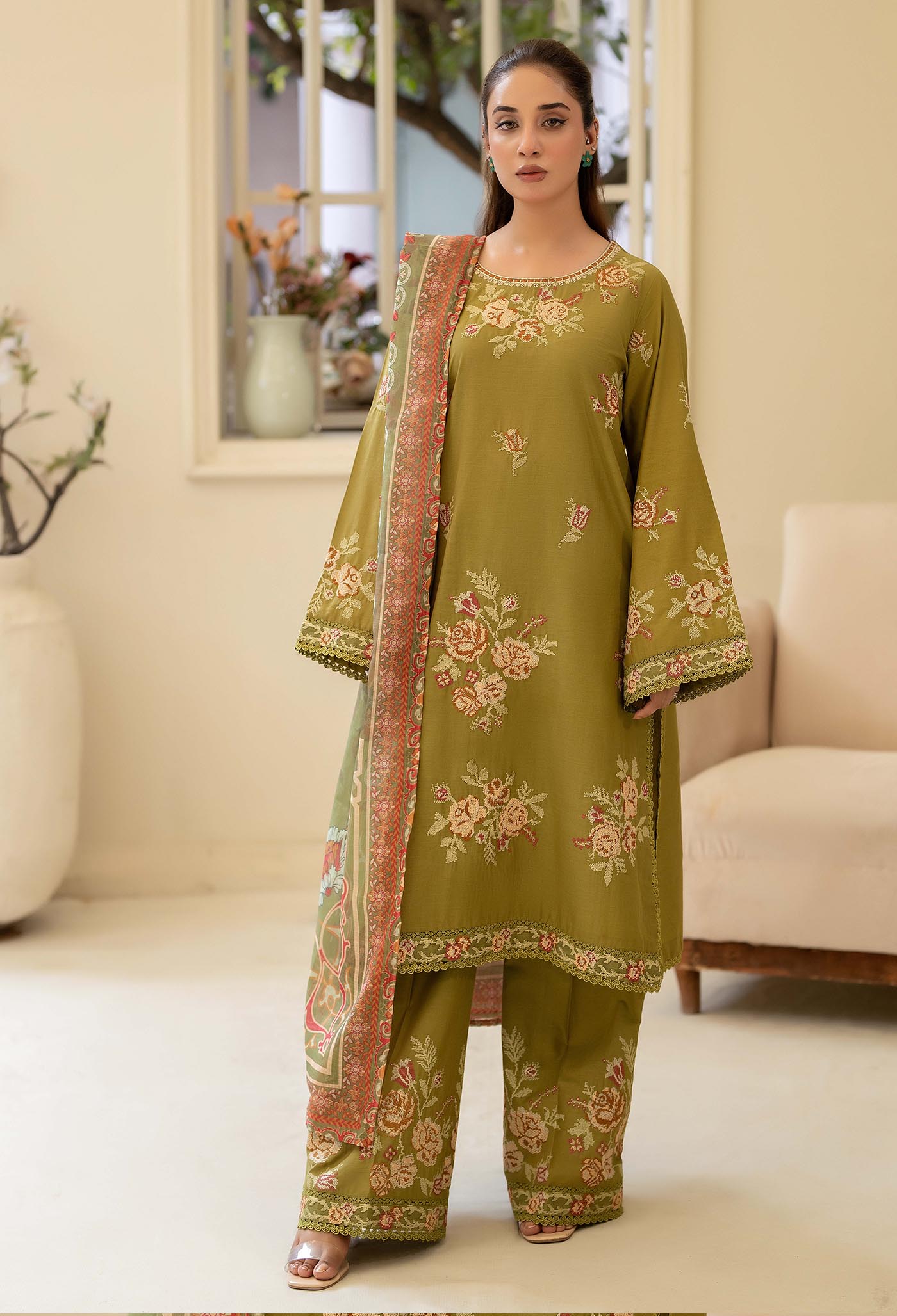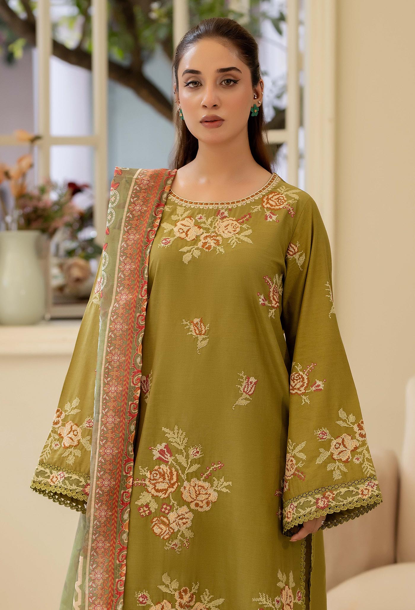 - Unstitched Embroidered Cotton Trouser 1-PC