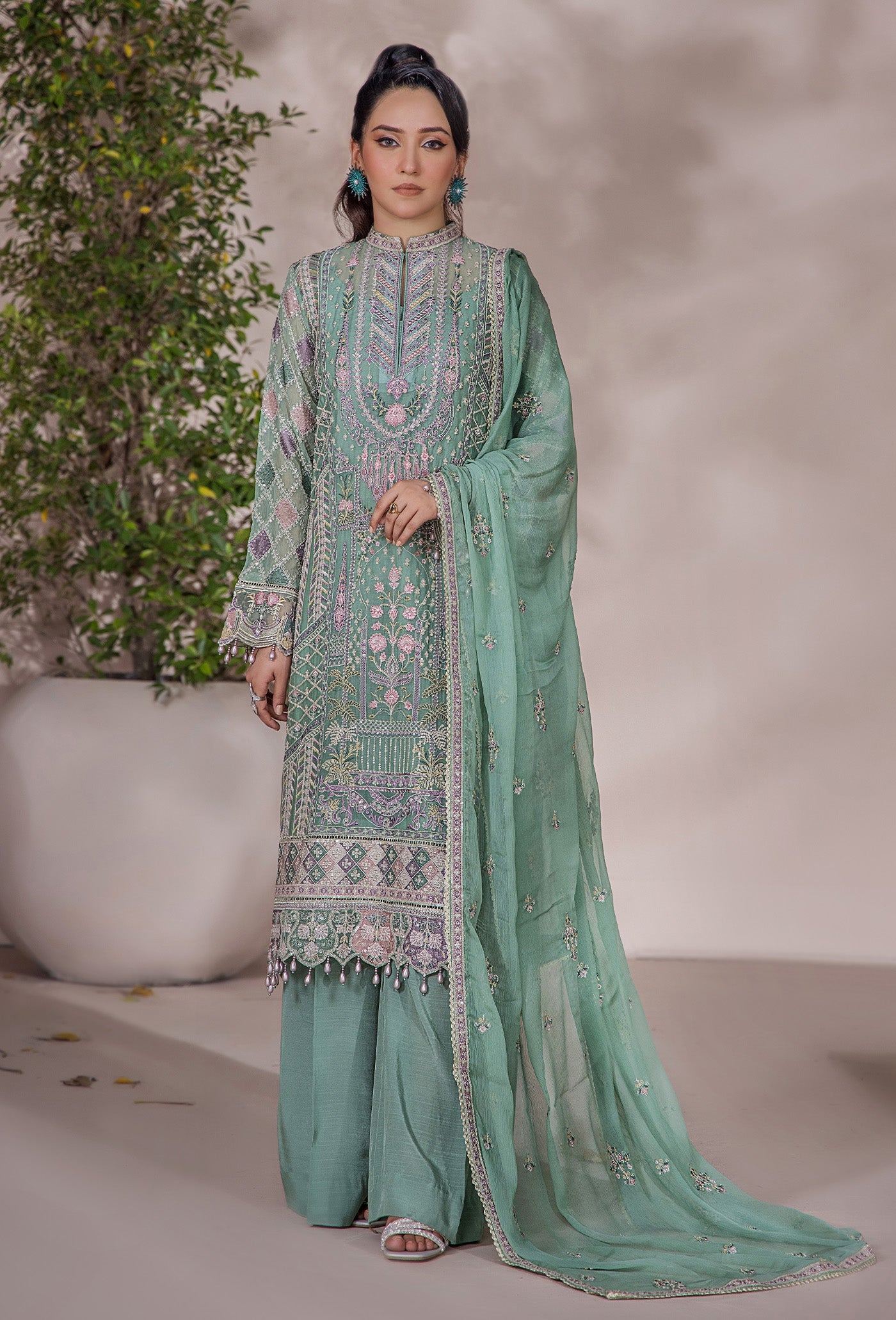 This article of Lueur Chapter 2 Embroidered Semi Stitched Chiffon includes: