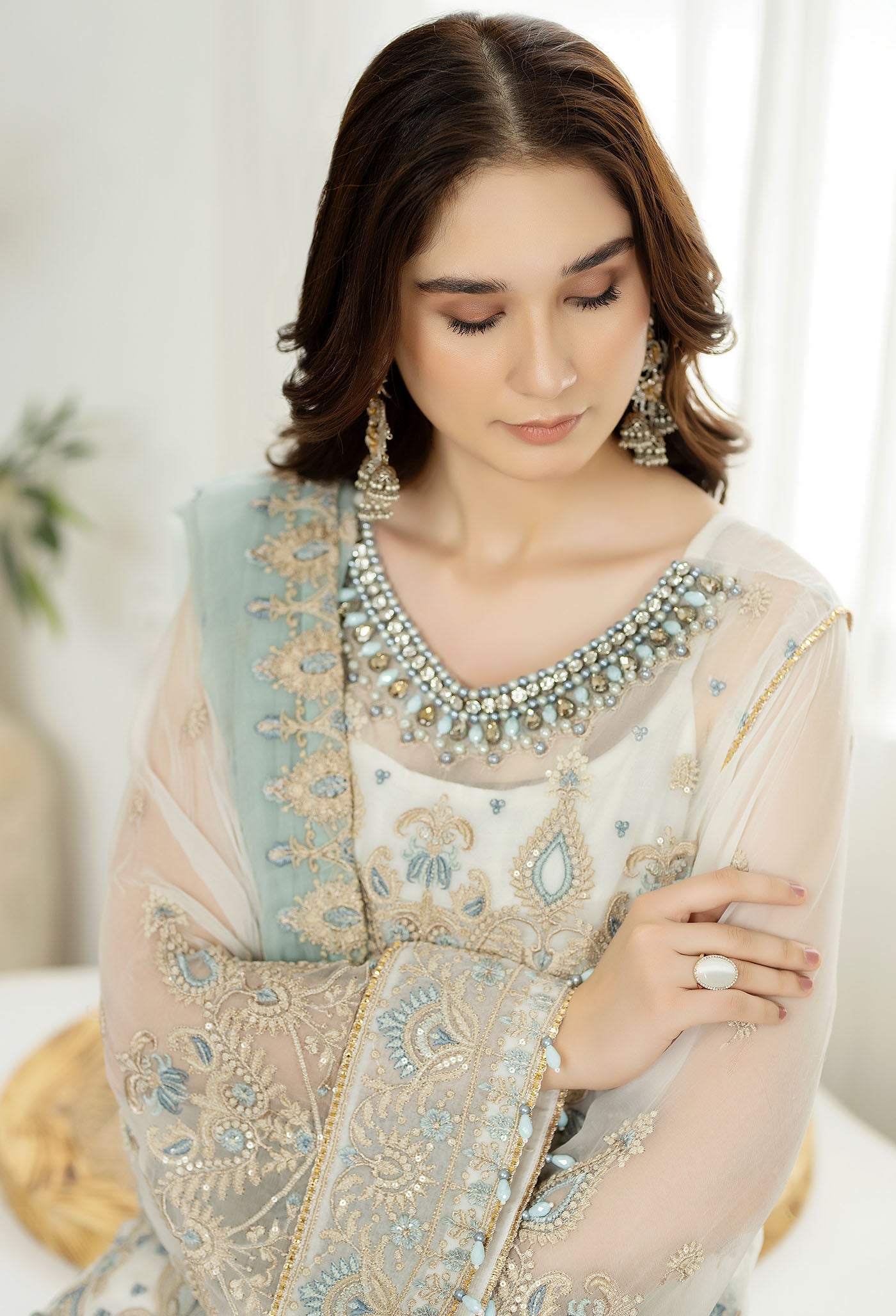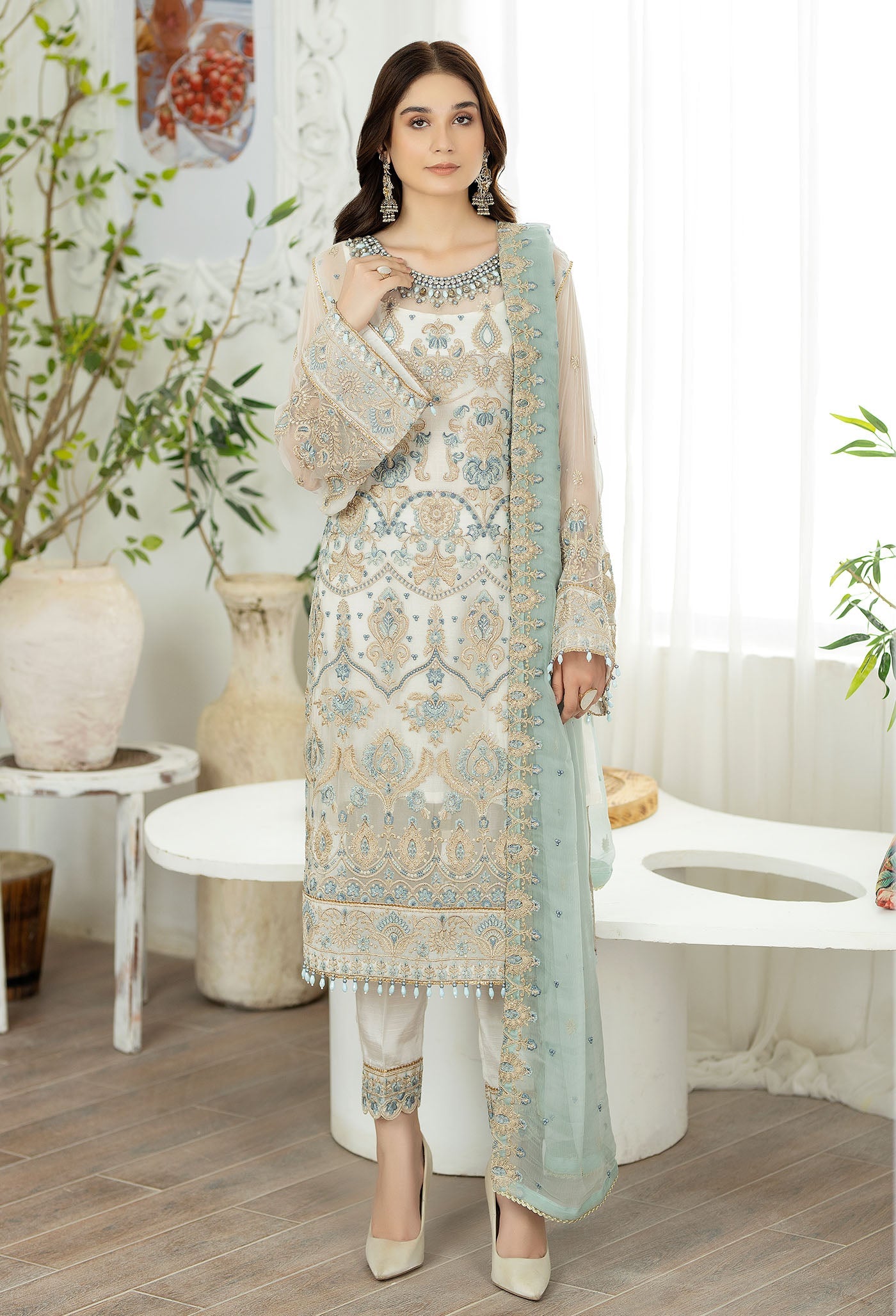 - Embroidered Ready To Wear Chiffon Shirt 1 PC