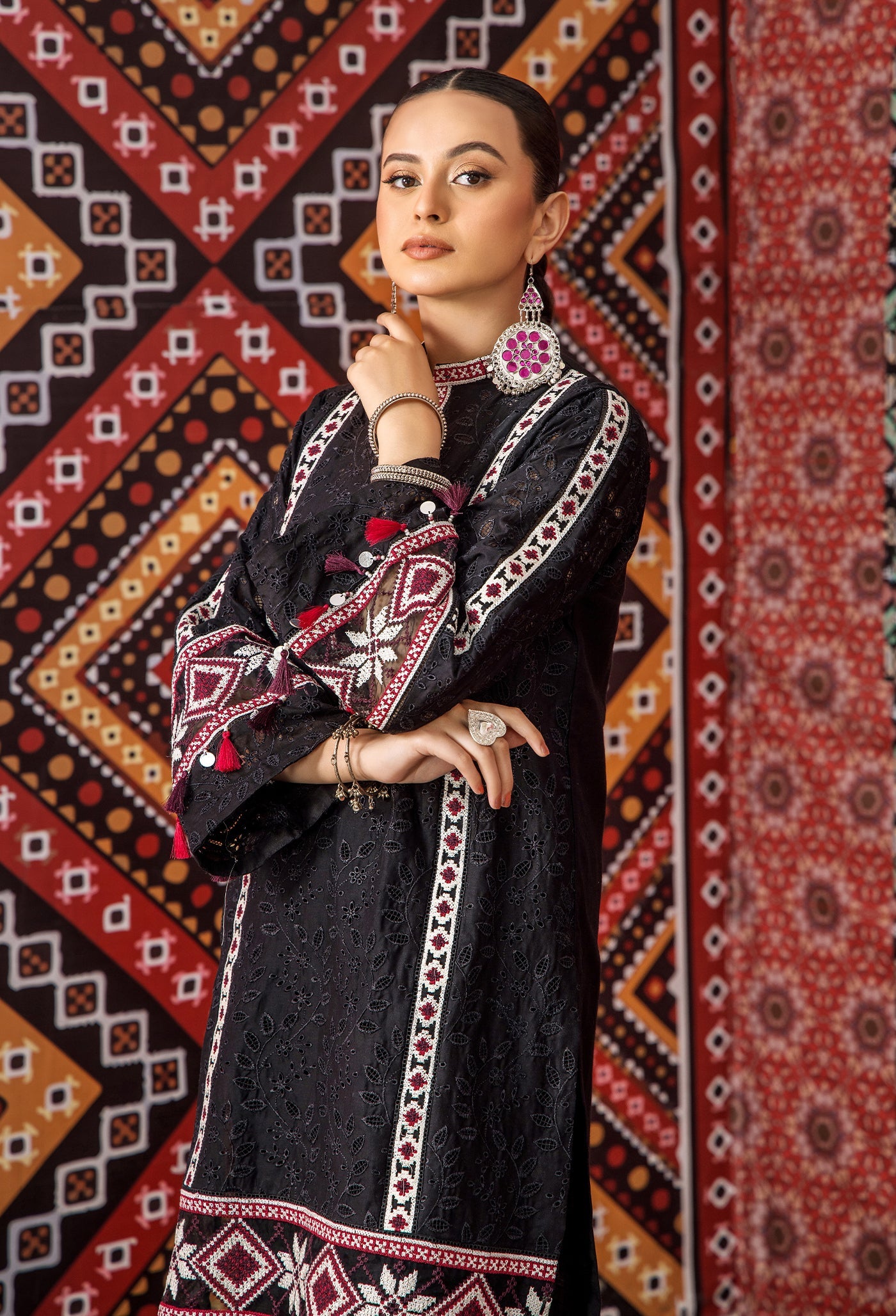 - (Included Cross-Stitch Embroidered Accessories)