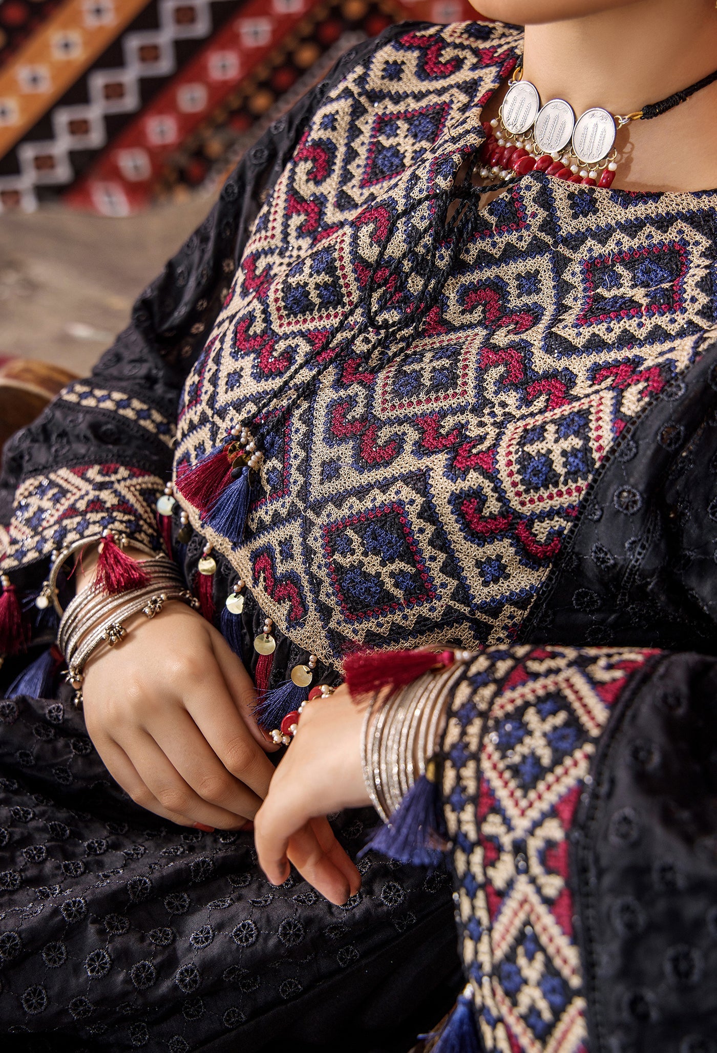 - (Included Cross-Stitch Embroidered Accessories)