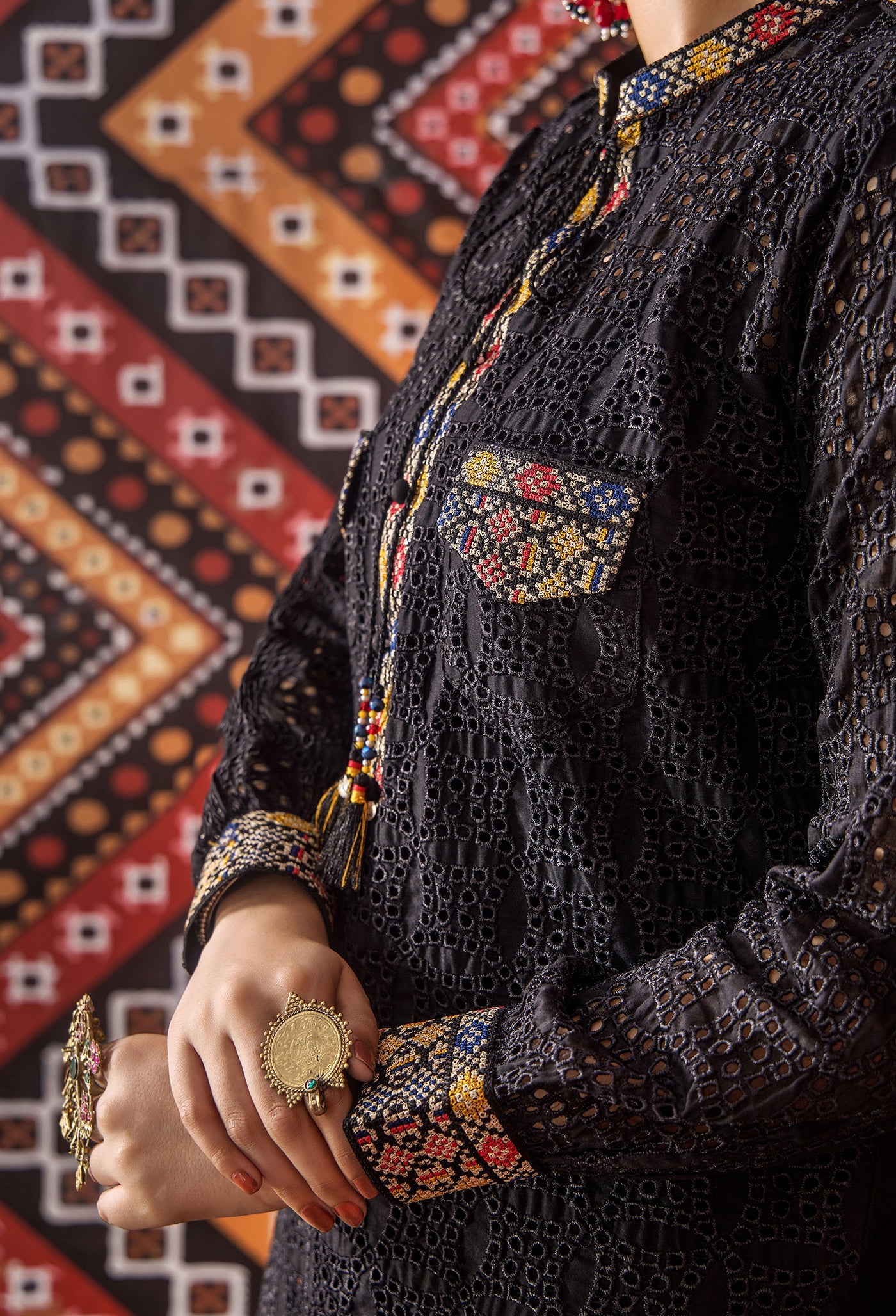 - (Included Cross-Stitch Embroidered Accessories)