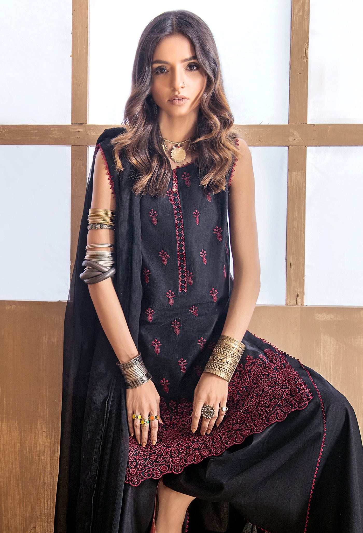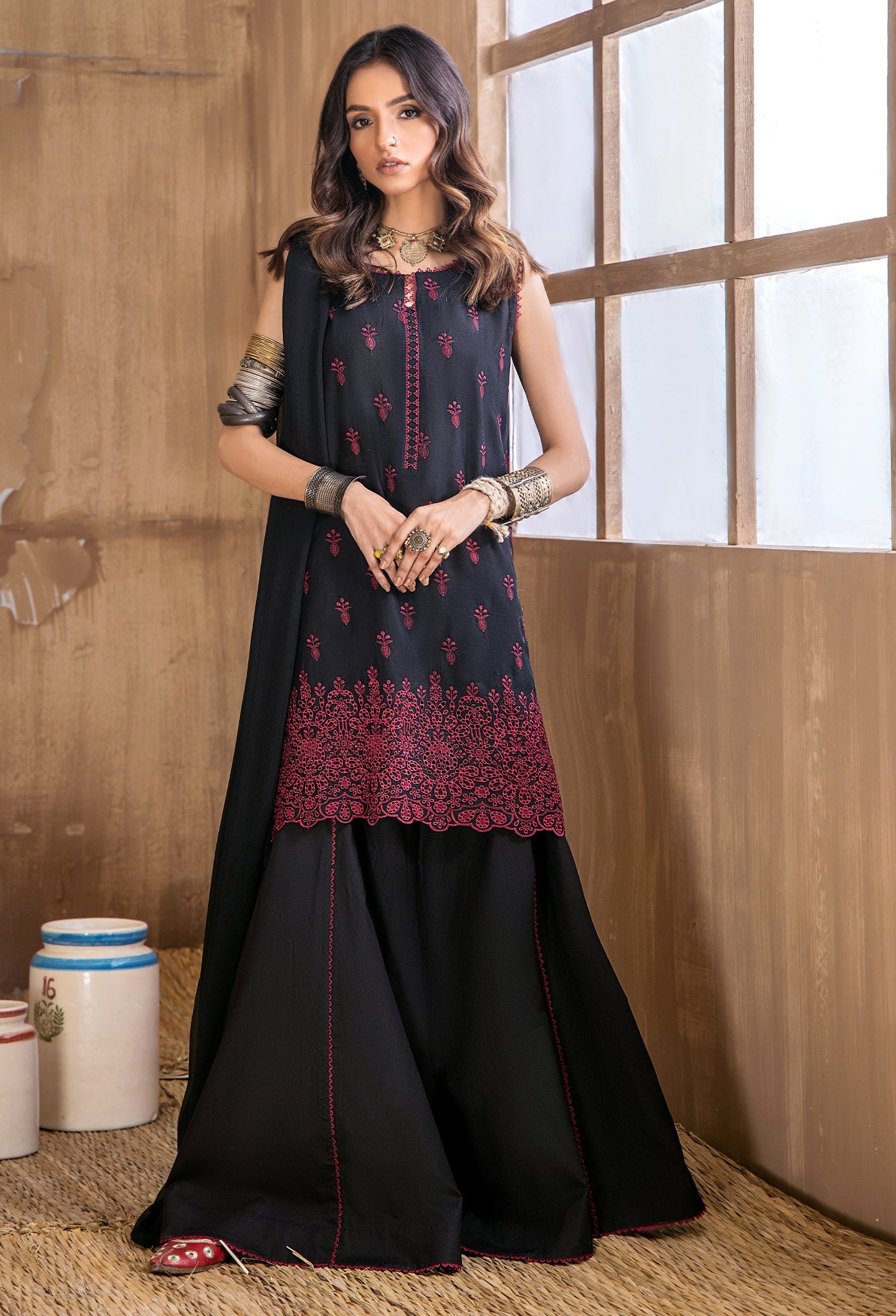 - Schiffli Embroidered Lawn Shirt: 1 piece