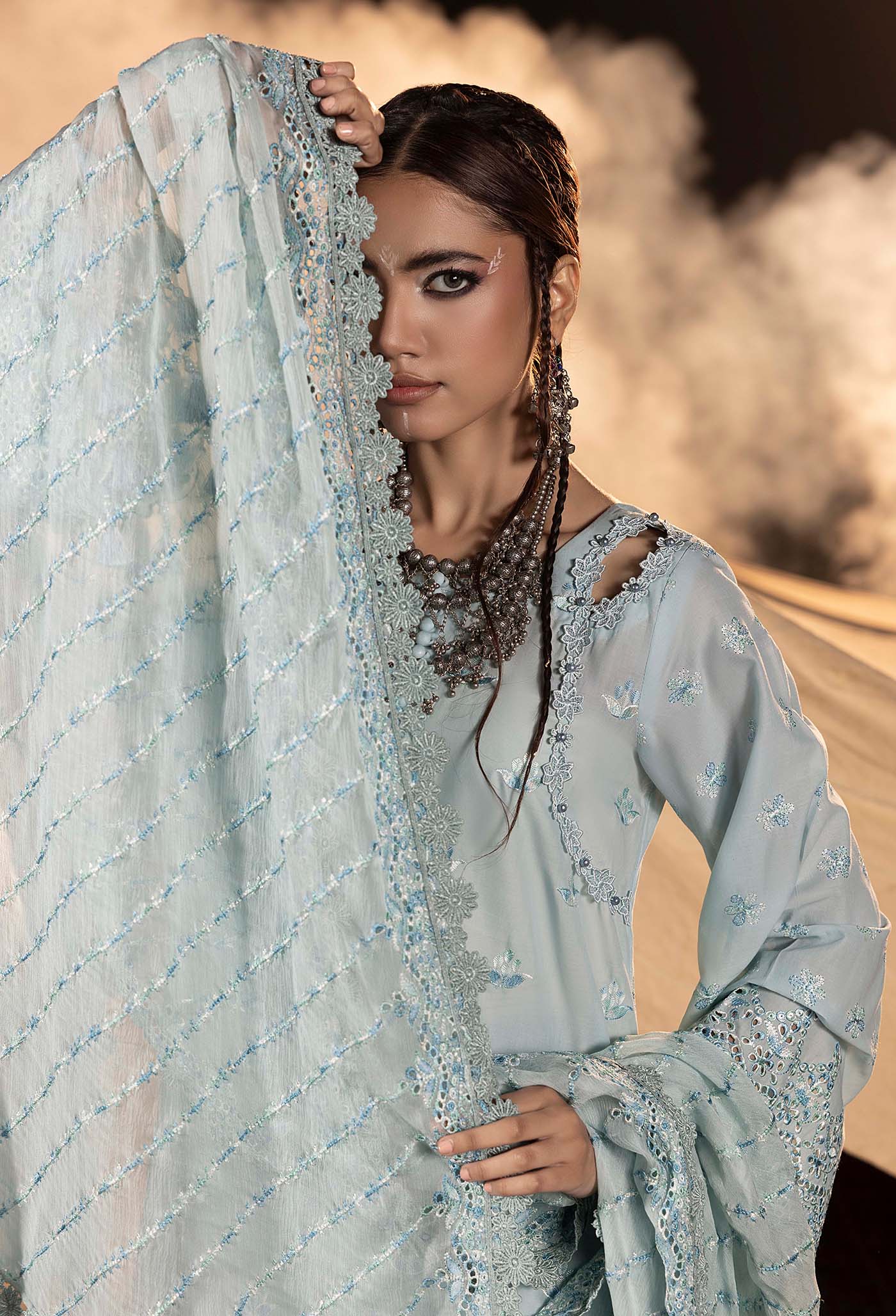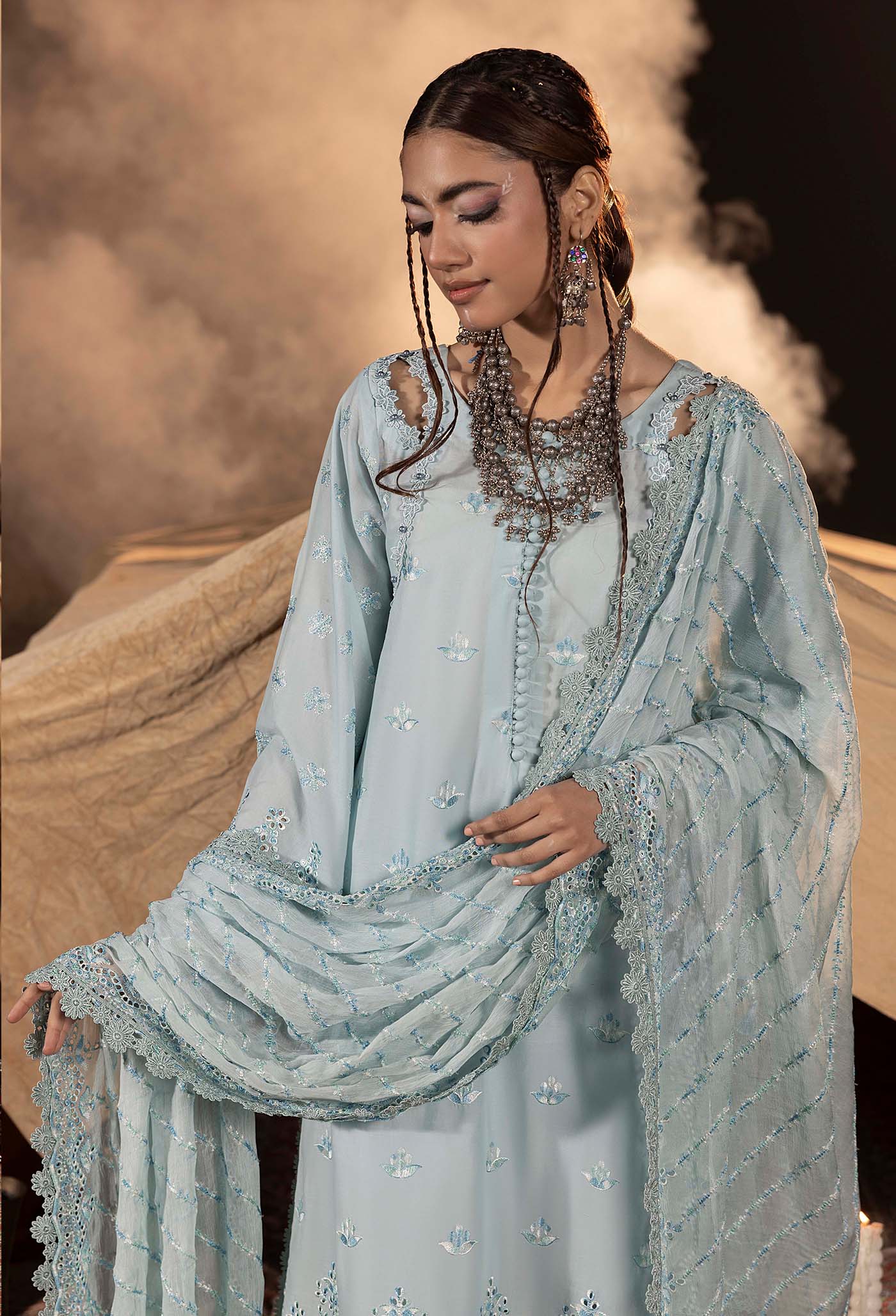 - Multi Thread Schiffli Embroidered Bembarg Chiffon Voil Dupatta 2.5 YARD