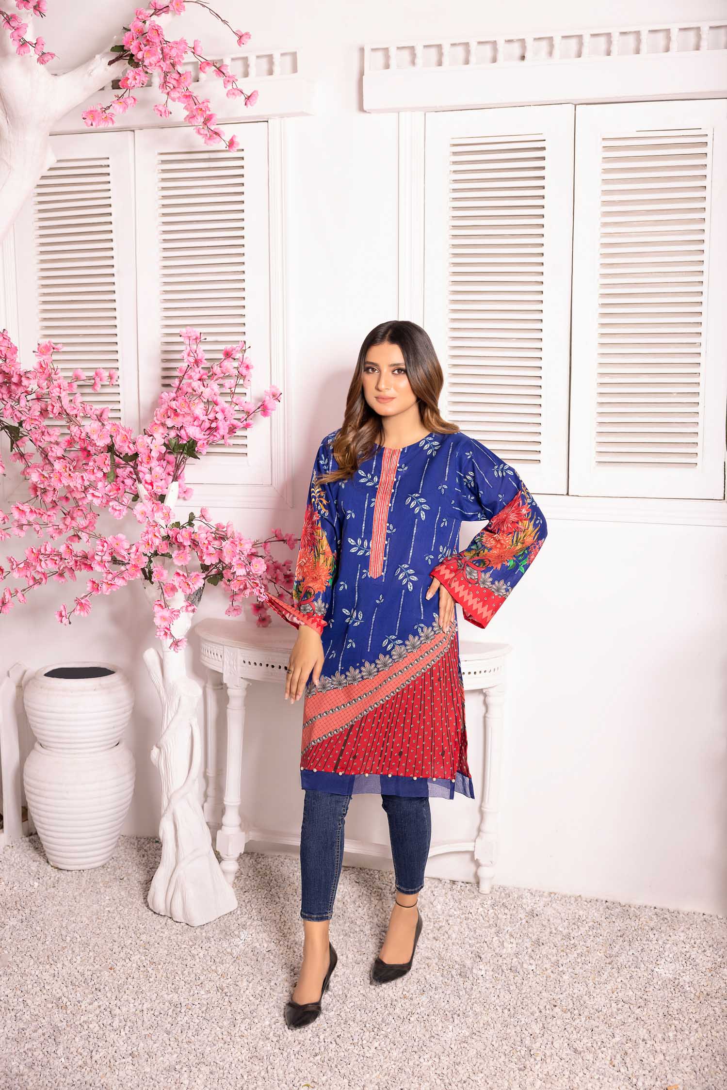 Neel Mix - Digital Printed Stitched Lawn Kurti