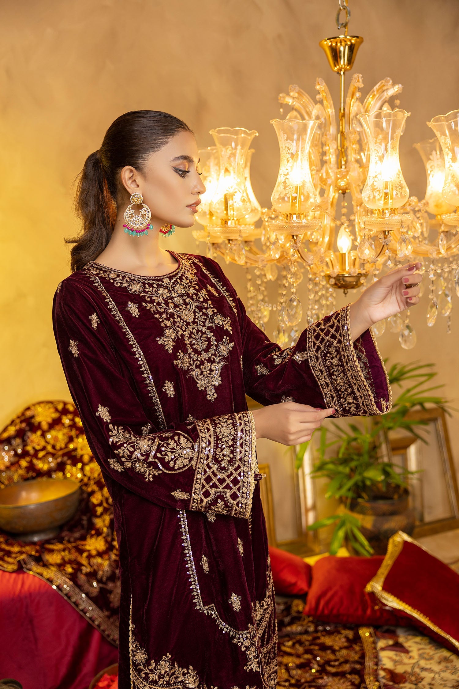 STITCHED EMBROIDERED VELVET SHIRT 1 PC