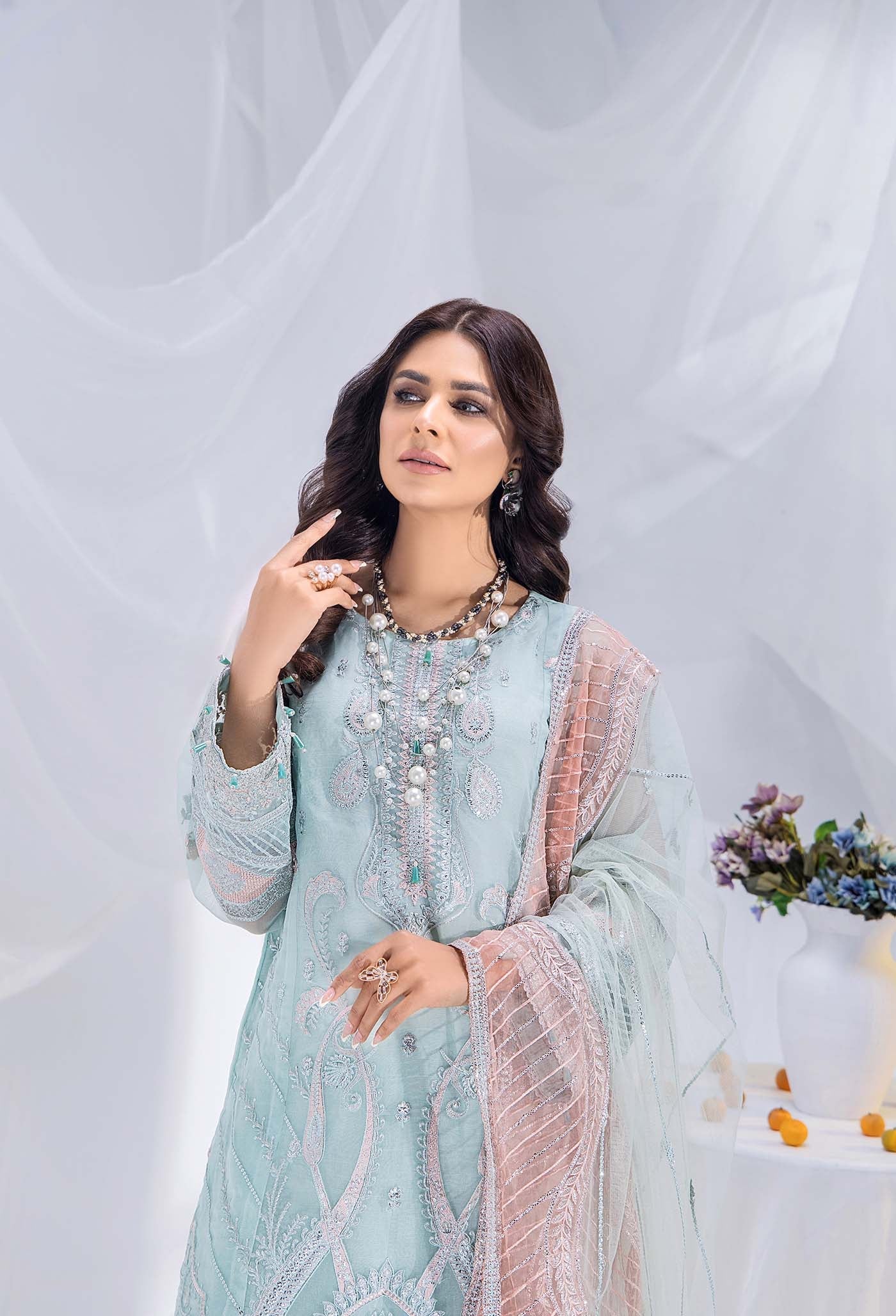 - Embroidered Ready To Wear Organza Shirt 1 PC