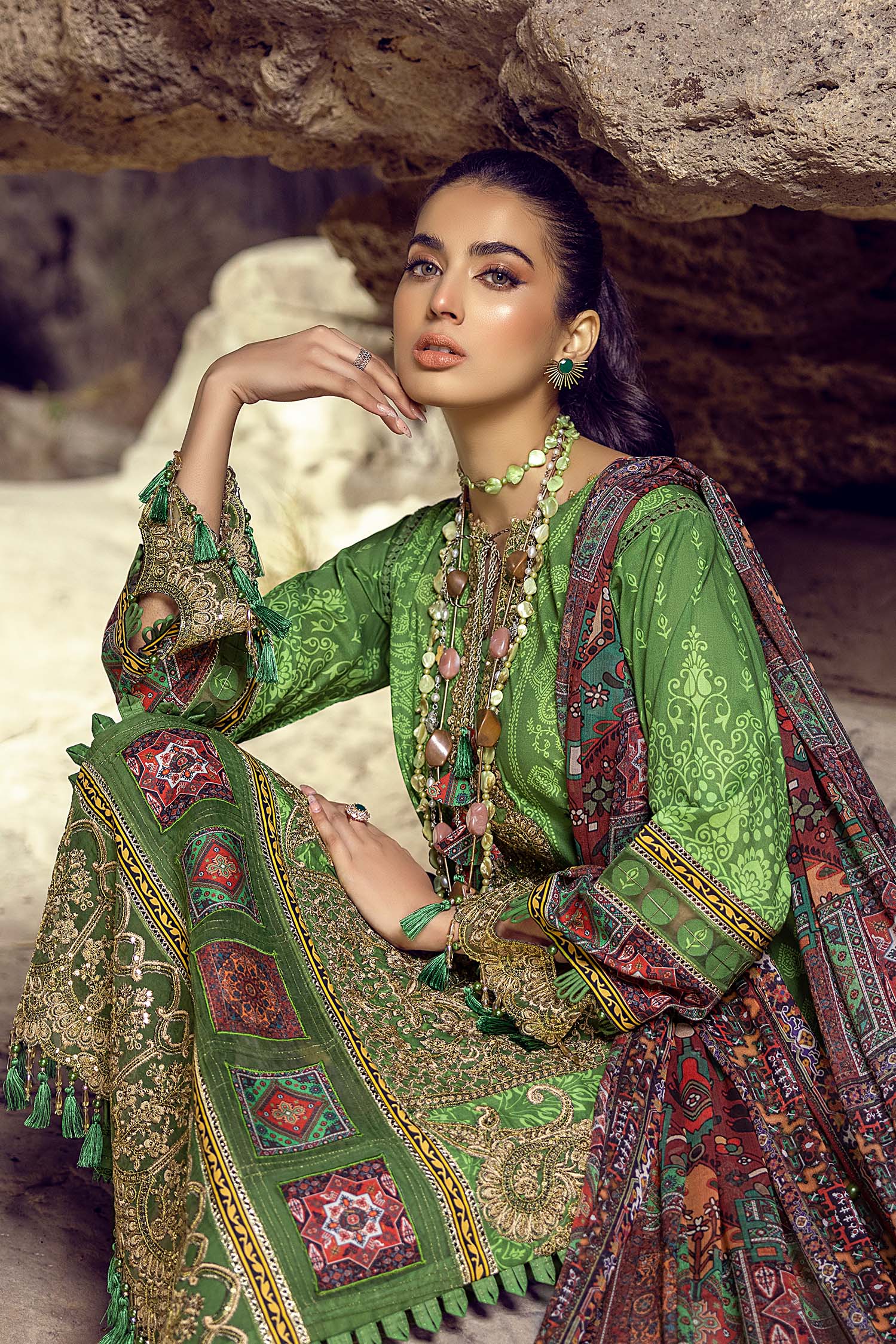 - Embroidered Sides Motifs For Front 2PC