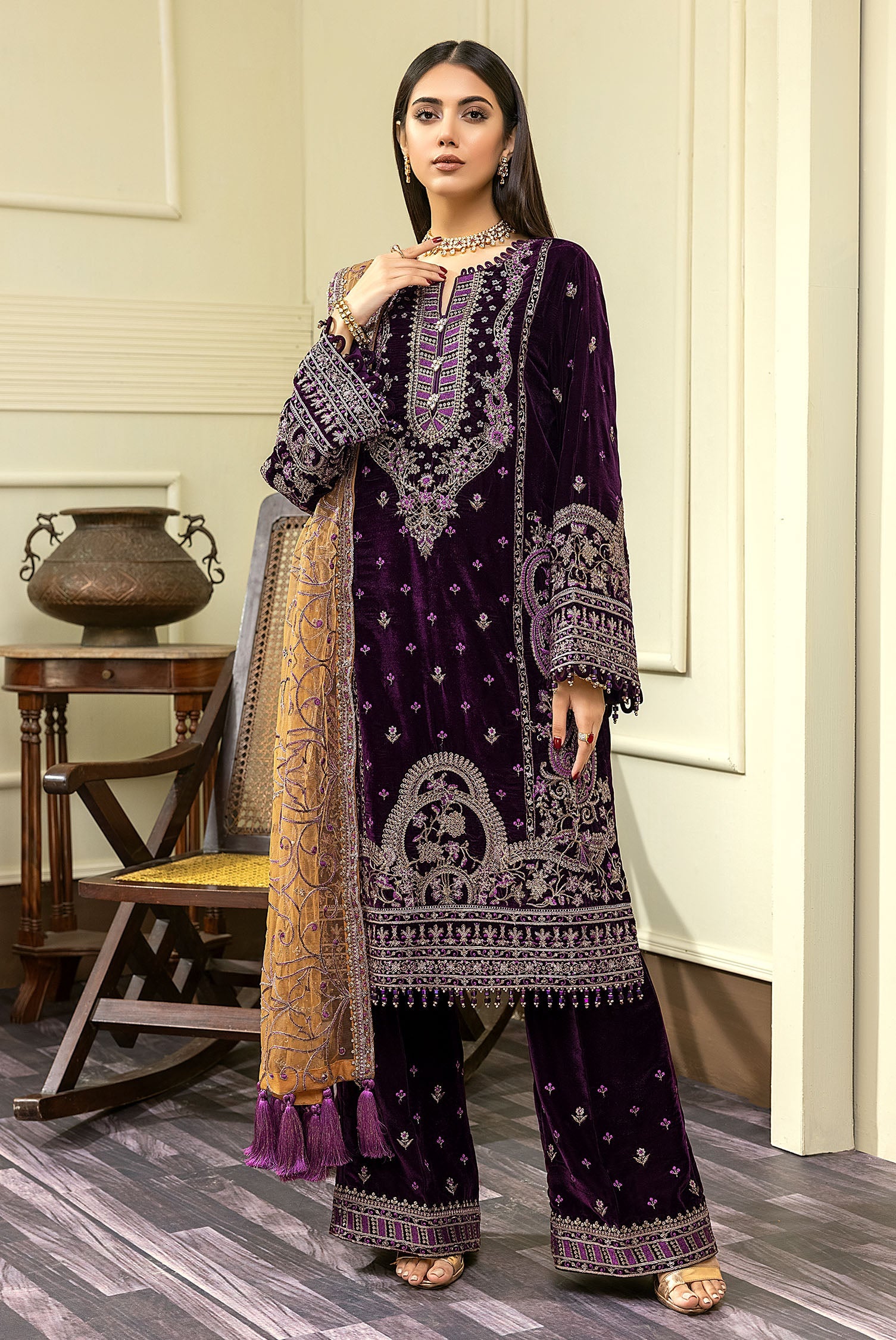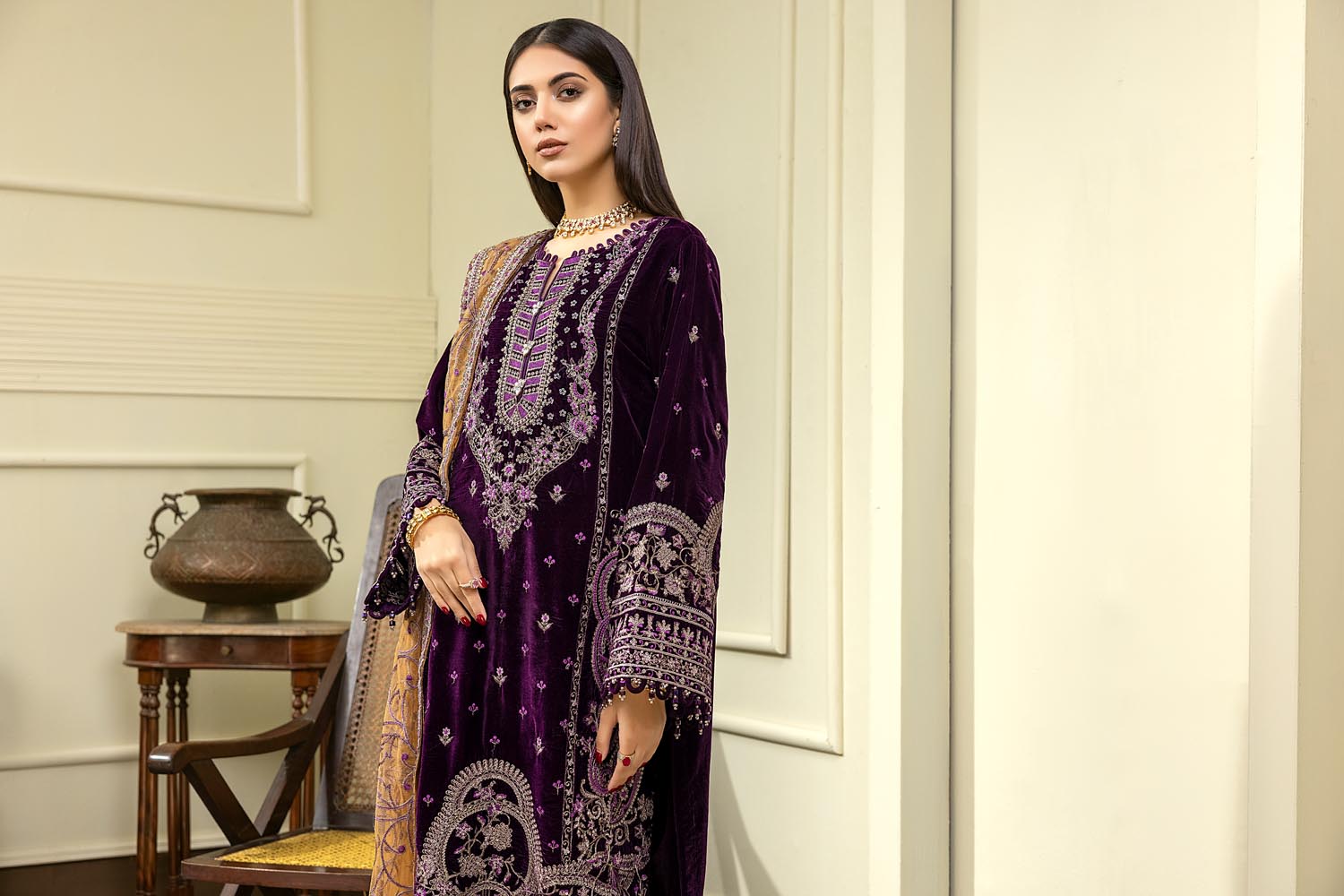 Embroidered Velvet Side 2 Panel For Front (0.33 MTR)