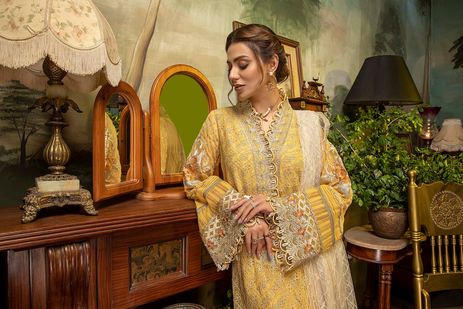 - Schiffli Embroidered Chiffon Front 0.8 MTR